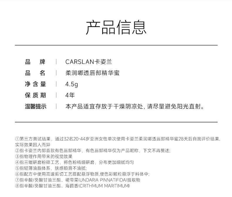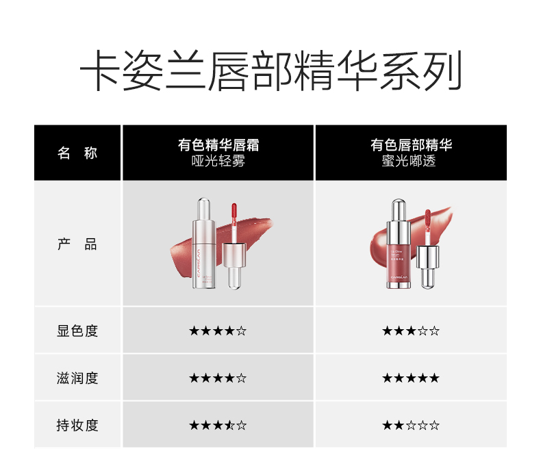 商品介绍:拍两件!卡姿兰唇部精华口红唇釉