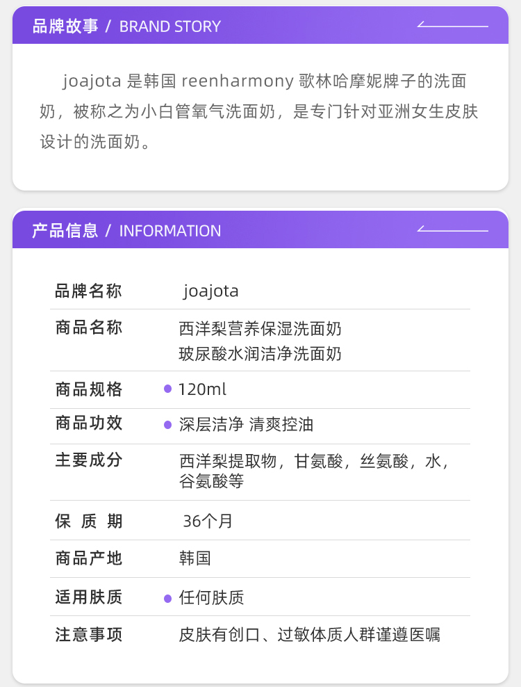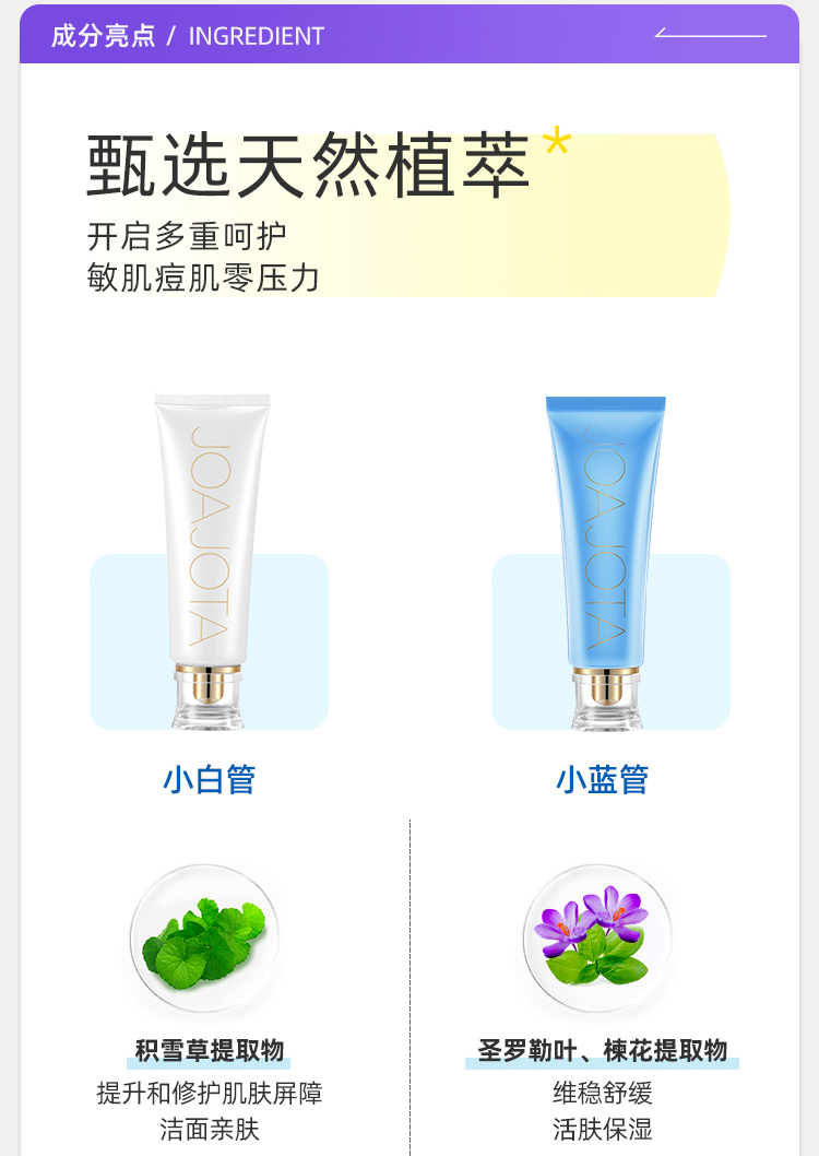 商品名称:【自营】joajota洗面奶氨基酸保湿清洁控油洁面乳小白管温和正品