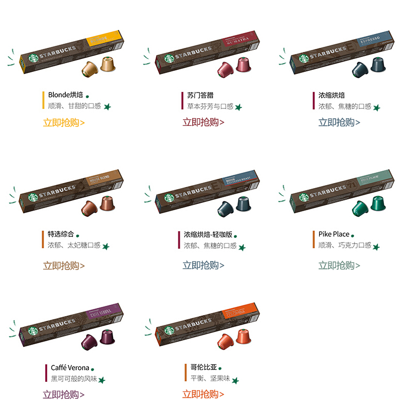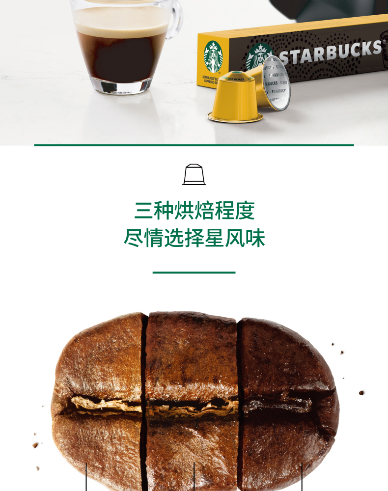 商品介绍:53g*3盒【星巴克】轻度烘焙浓缩胶囊咖啡