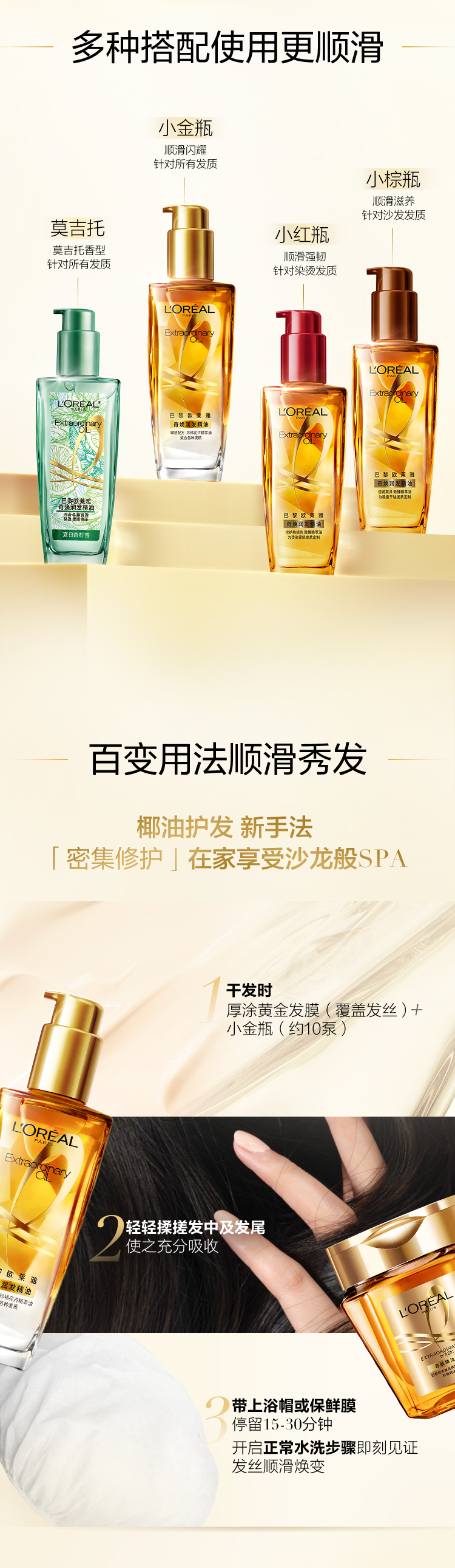 商品介绍:【拍二共460ml】欧莱雅小金瓶护发精油发油