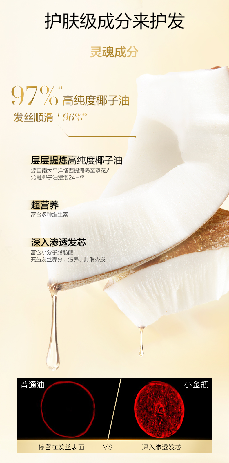 商品简介:【拍二立减76元,15元券,上午10点到晚上24点礼金6.19,88VIP到手97.17元】拍二赠小红瓶护发60ml共到手260ml精油+100ml*2洗发】刘雯代言,全能炸场王,它的质地轻盈易吸收,一点都不油腻,抹在头发上,瞬间感觉头发被滋养了,顺滑又光泽,拯救你的每个炸毛时刻,层层提炼高纯度椰子油,充盈发丝养分,滋养,顺滑秀发!