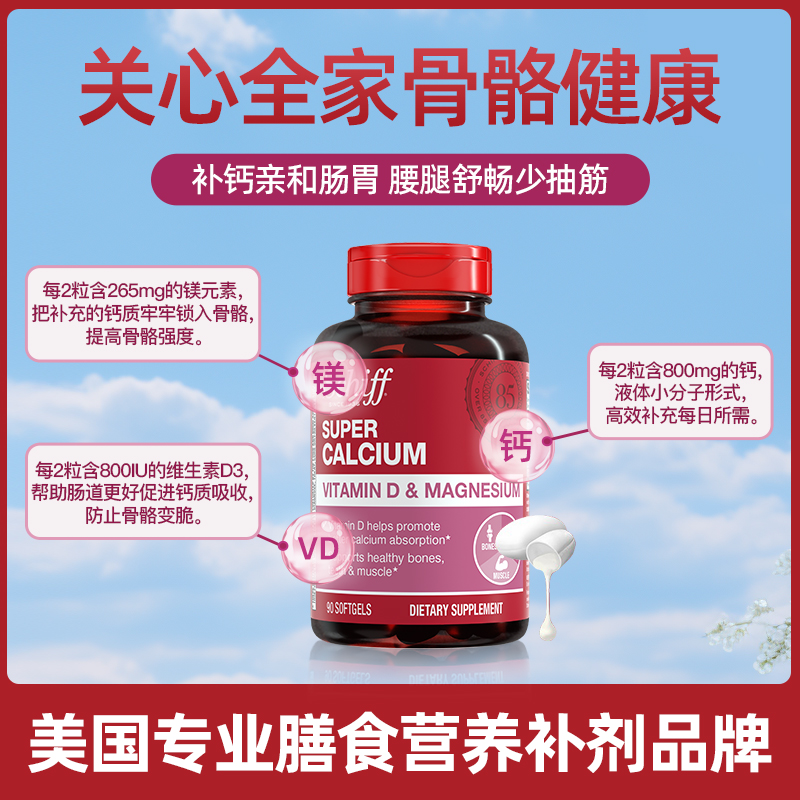 商品介绍:Schiff加镁液体钙片中老年VD成人补钙软胶囊