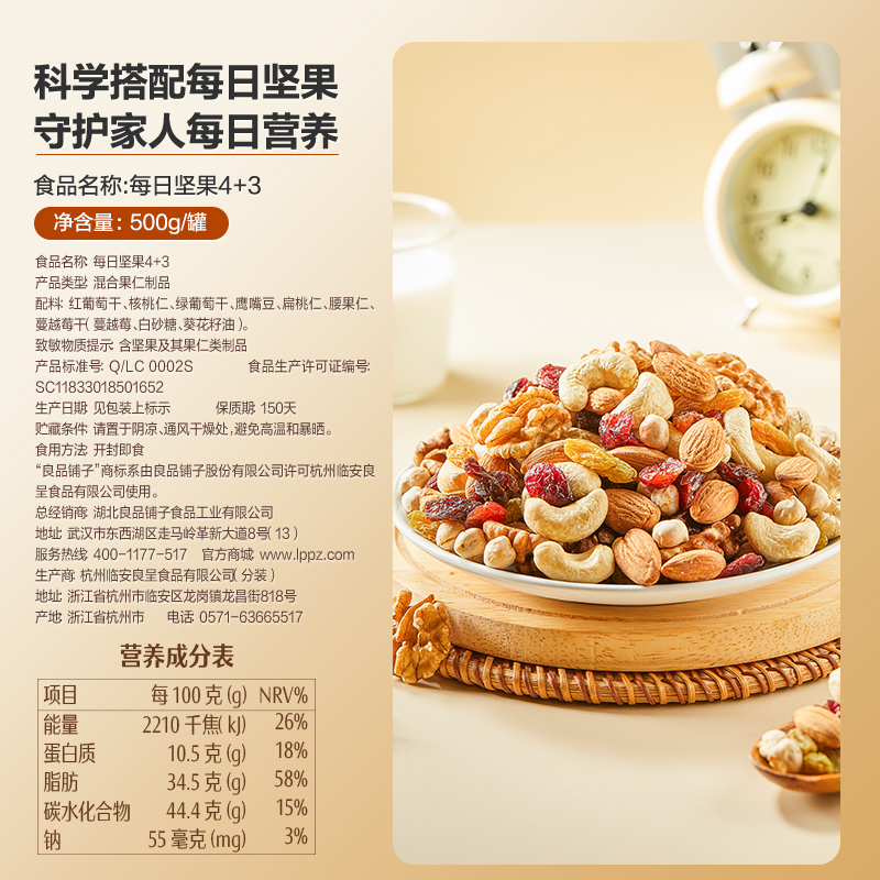 商品名称:良品铺子每日坚果400g大罐混合果仁干果罐装孕妇健康休闲儿童零食