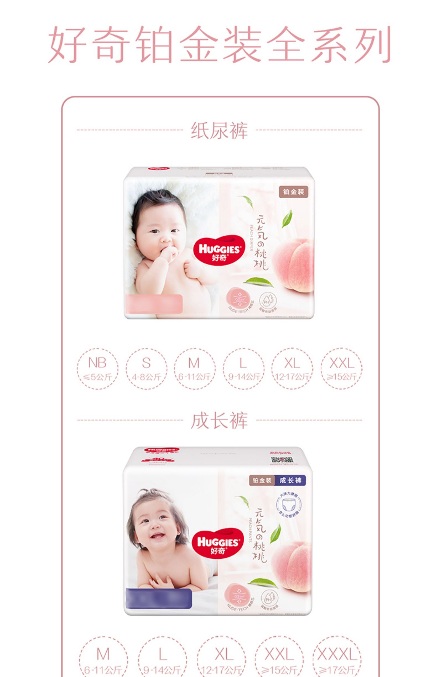 商品名称:好奇铂金装日夜用拉拉裤L/XL/XXL弱酸尿不湿尿裤小桃裤超薄透气