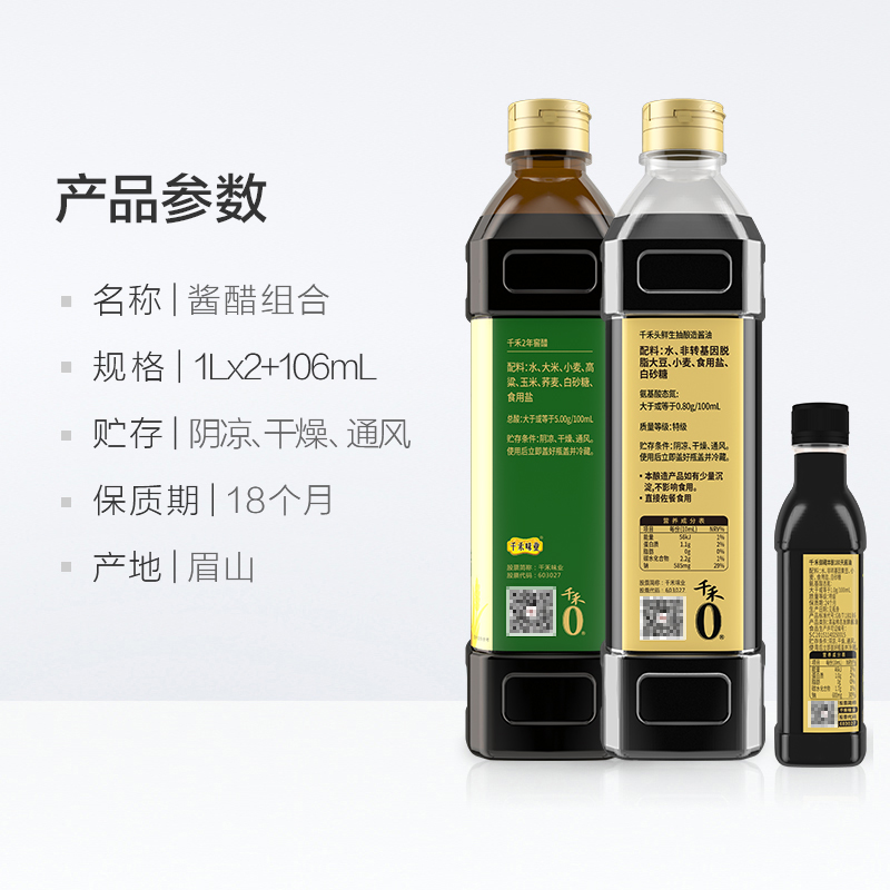 商品介绍:15.9!千禾特级生抽1L+窖醋1L+生抽106ml