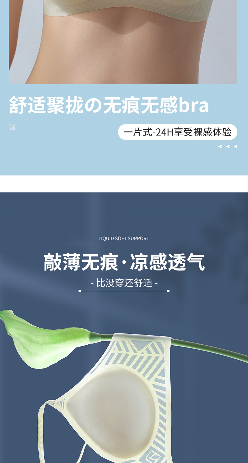 商品简介:一片式无痕文胸,享受24h裸感体验,透气杯垫,服帖不闷热,轻薄凉感透气,穿了比没穿还舒适,黑科技智能软支撑,承托胸部防止下垂!【升级版运费险】