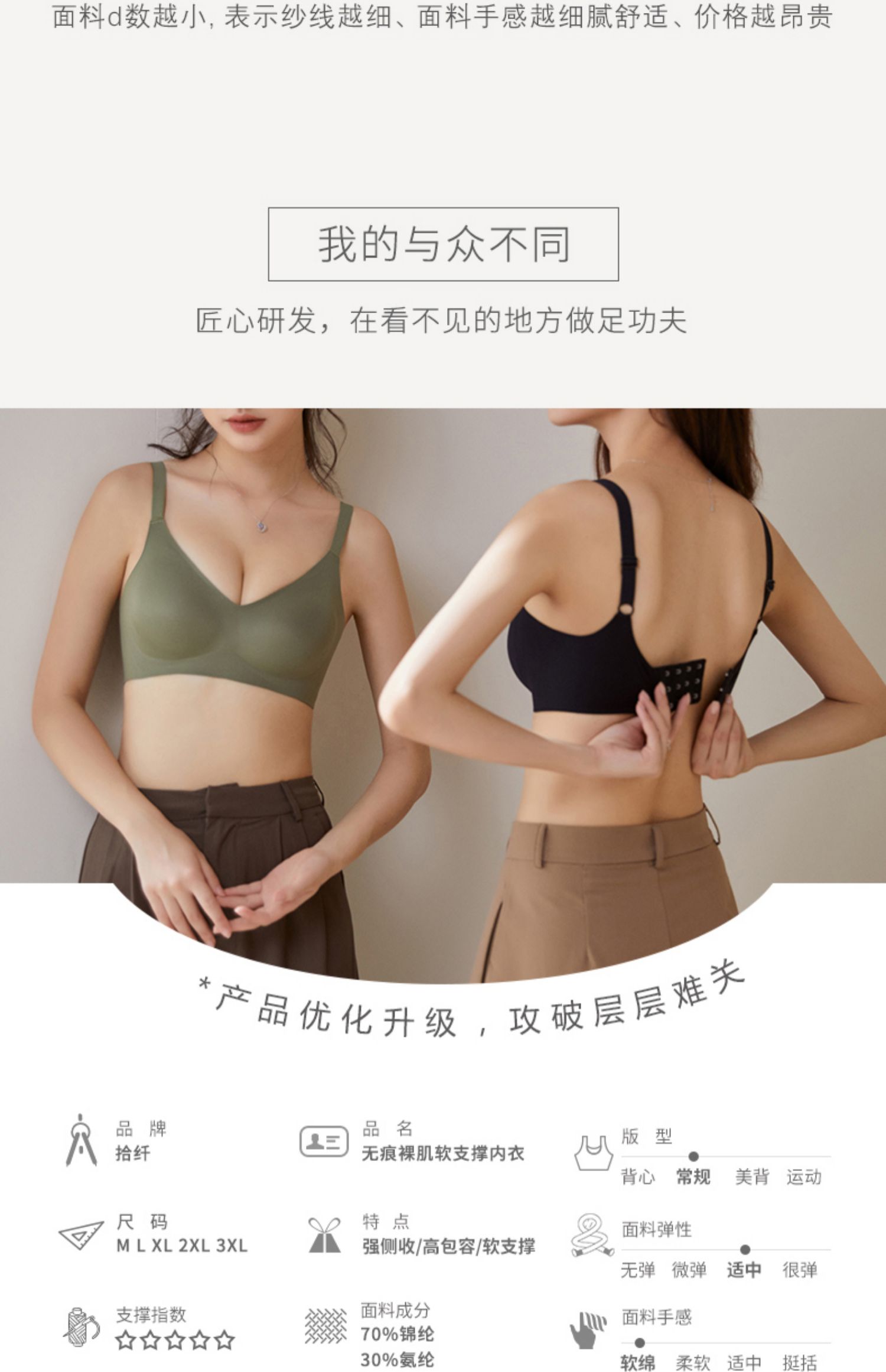 商品介绍:【拾纤】超薄无痕聚拢运动内衣