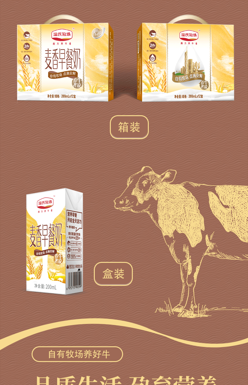 商品名称:10月温氏牧场麦香早餐奶200ml*12盒/箱学生儿童营养牛奶饮品整箱