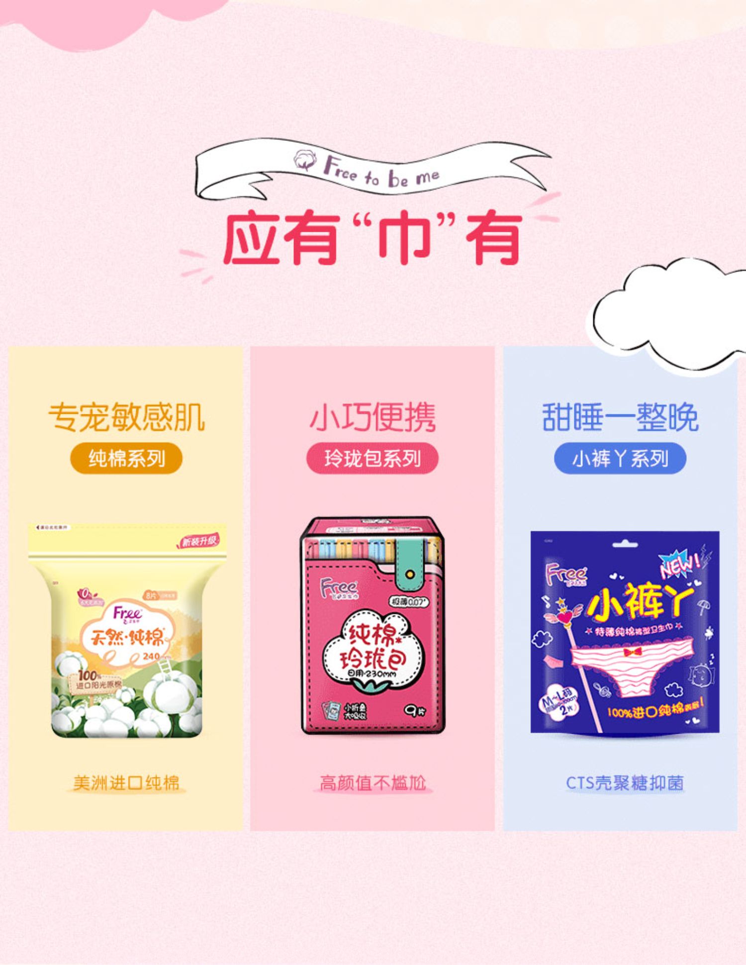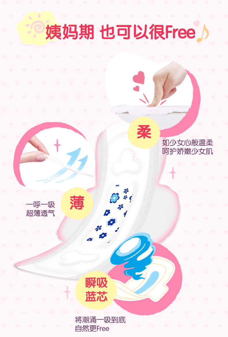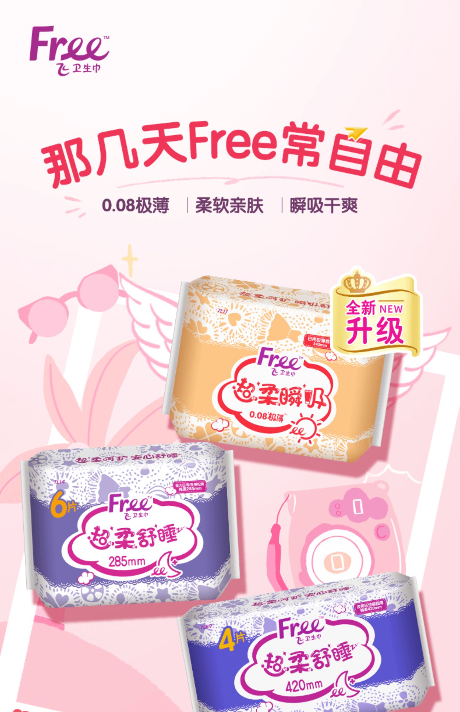 商品简介:Free超薄卫生巾日夜组合!超薄卫生巾组合!日用夜用都有,海量吸收,立体防漏,想怎么动就怎么动!!