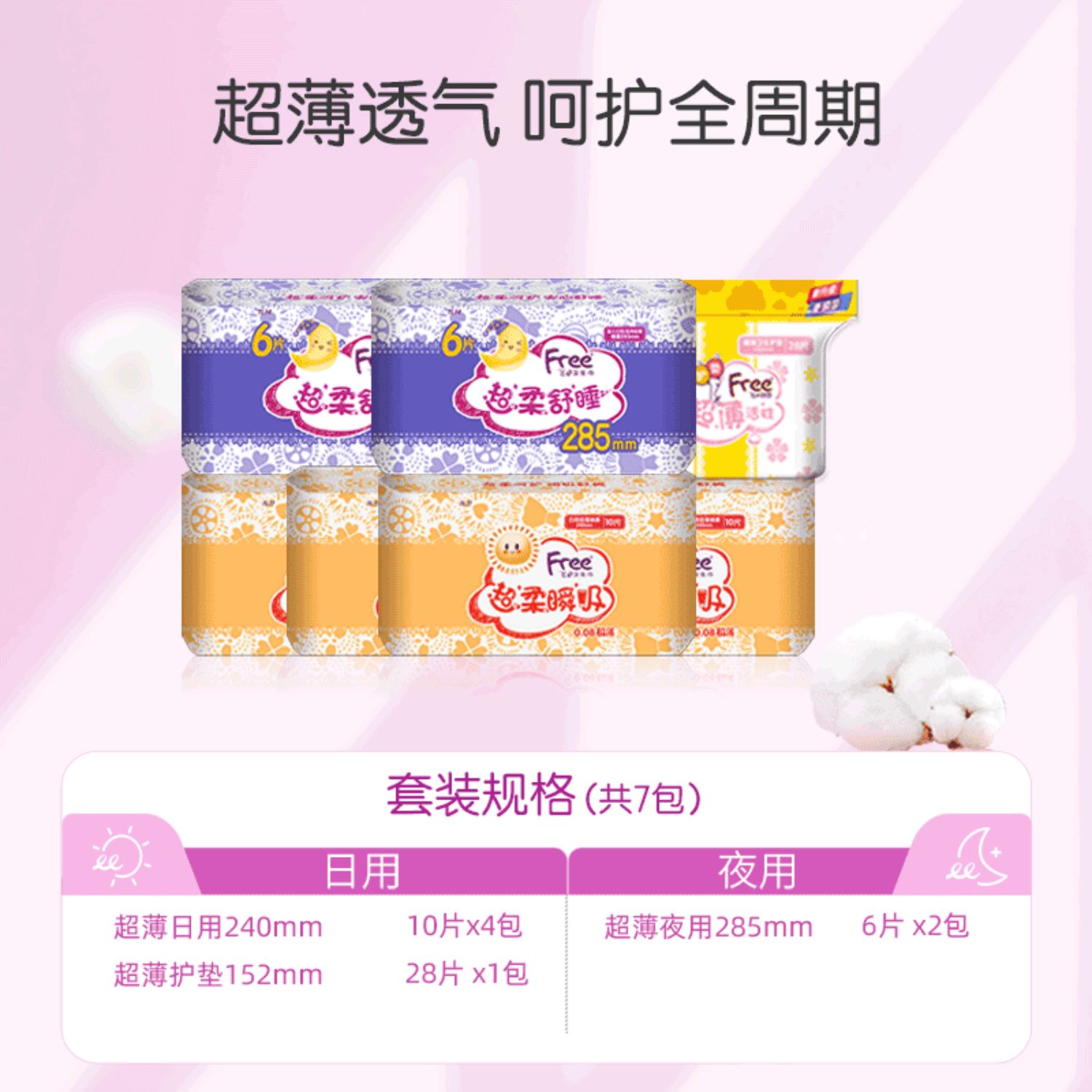 商品名称:Free超薄卫生巾日夜组合装姨妈巾少女薄款卫生巾7包