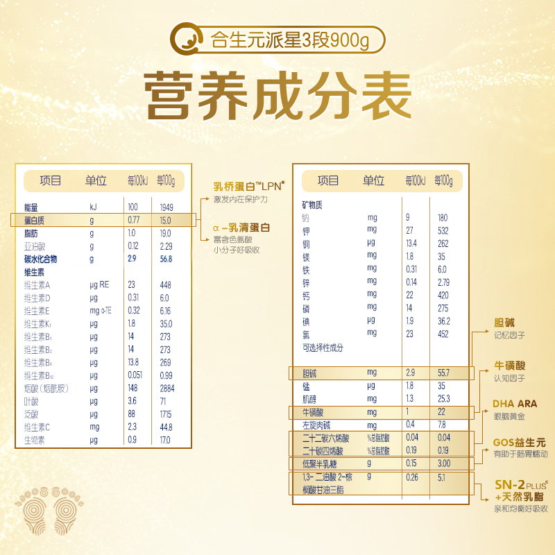 商品名称:【自营】合生元牛奶粉派星3段700g*2乳桥蛋白LPN效期至25年7月