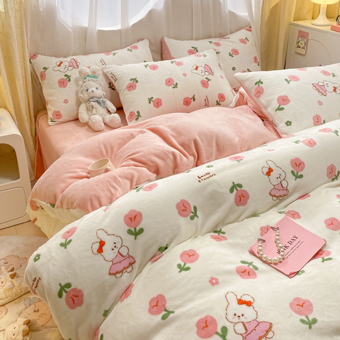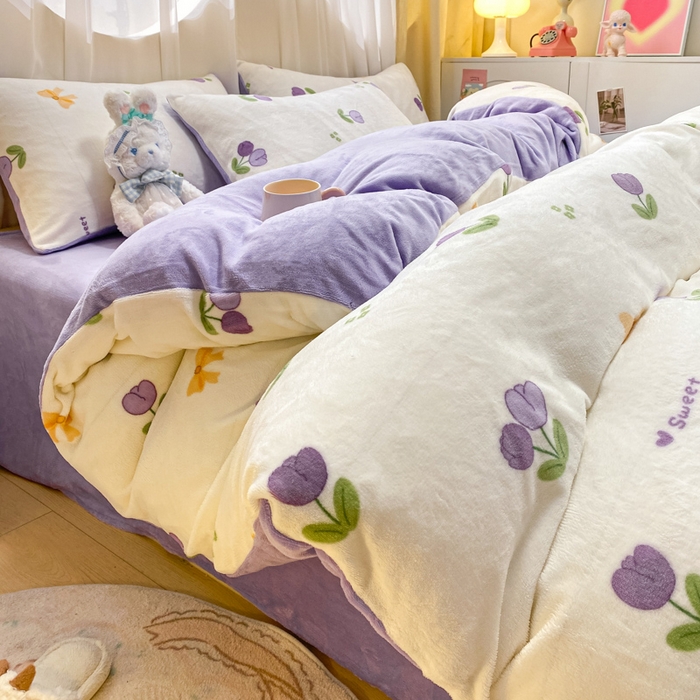 商品名称:2024新款母婴A类牛奶绒印花四件套加绒速热保暖床上用品三件套