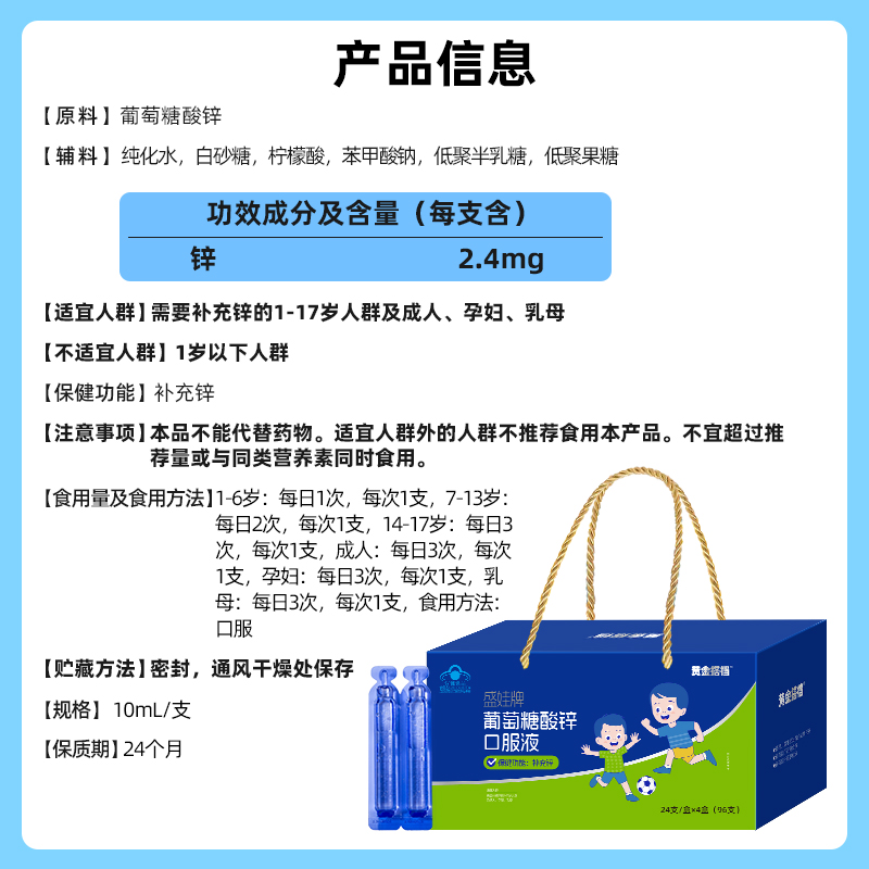 商品名称:黄金搭档葡萄糖酸锌口服液儿童青少年成人男女补锌96支礼盒装S