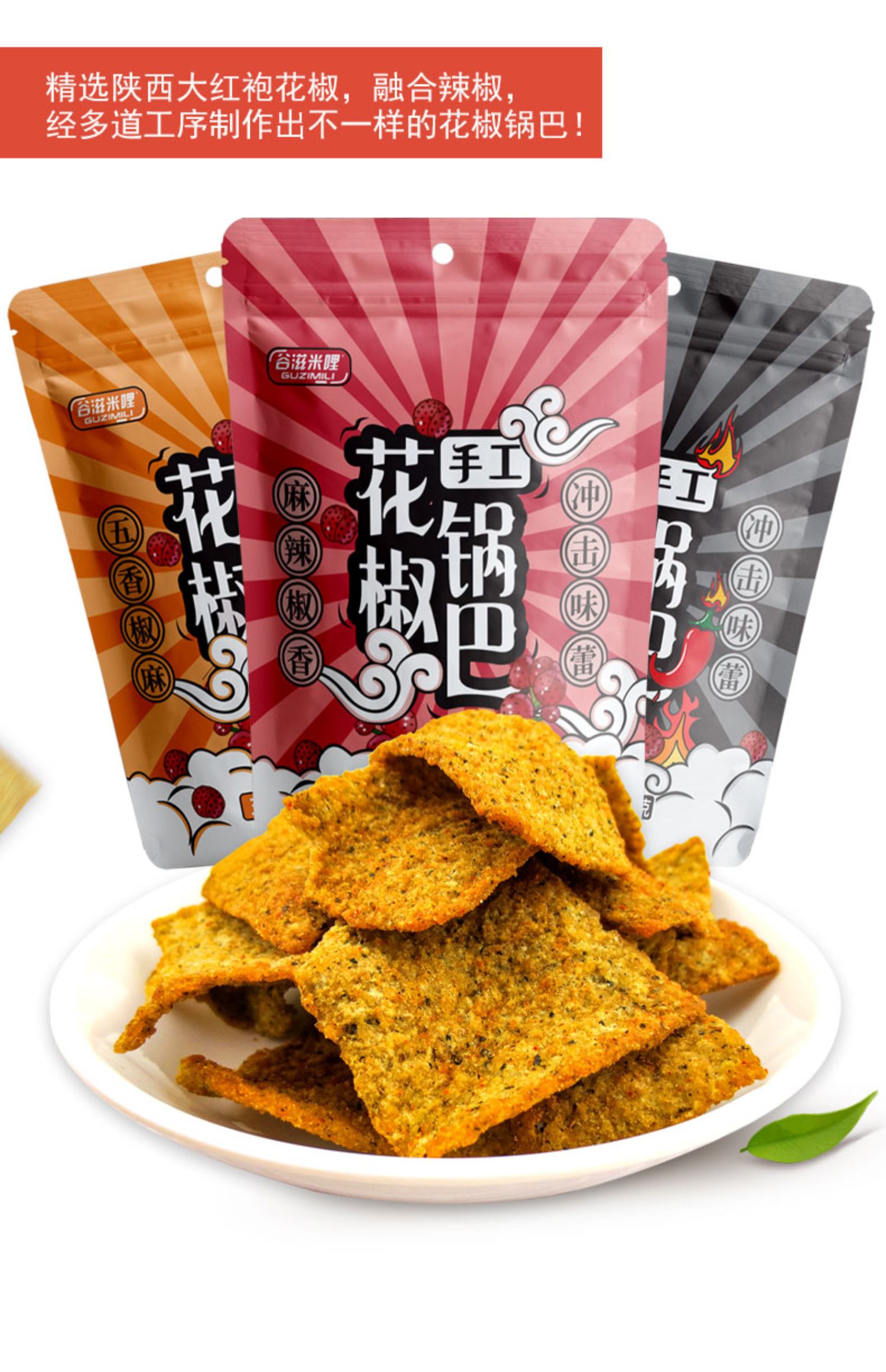商品介绍:谷滋米哩花椒手工锅巴5包590g