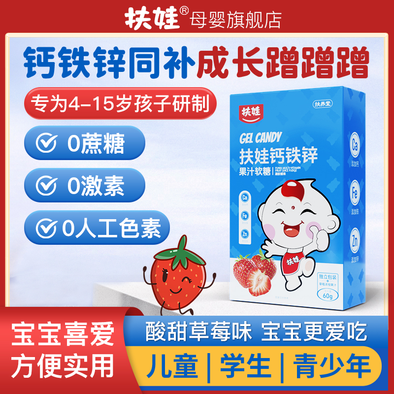 商品名称:扶娃旗舰店正品成人婴幼儿童青年补钙补铁补锌软糖果高钙口服