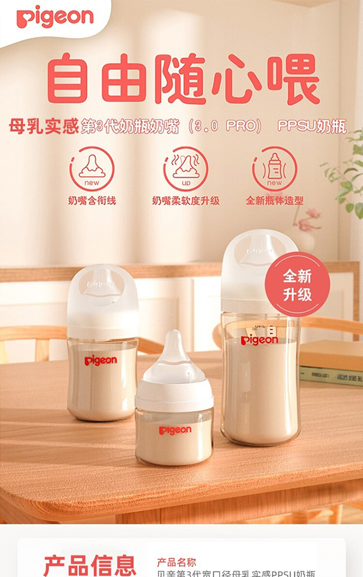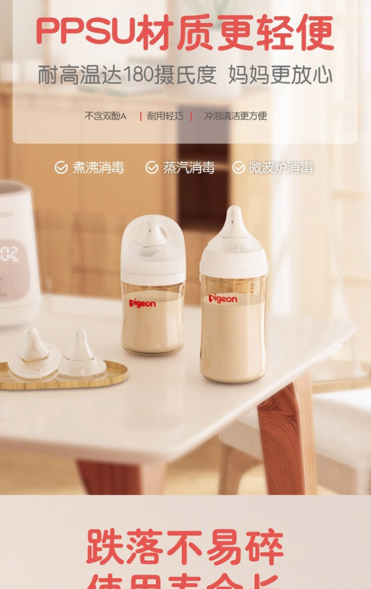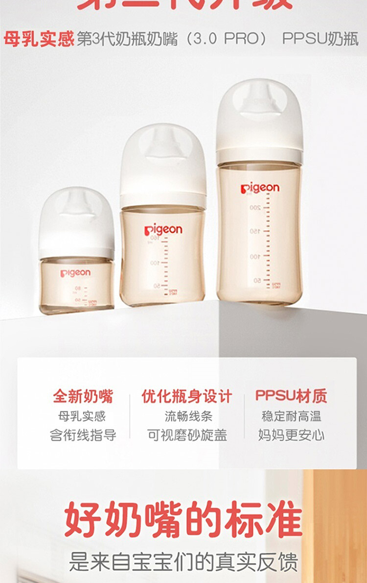商品简介:【叠88vip,凑后折55起】跨境进口贝亲第三代,宽口径母乳实感防摔PPSU塑料奶瓶