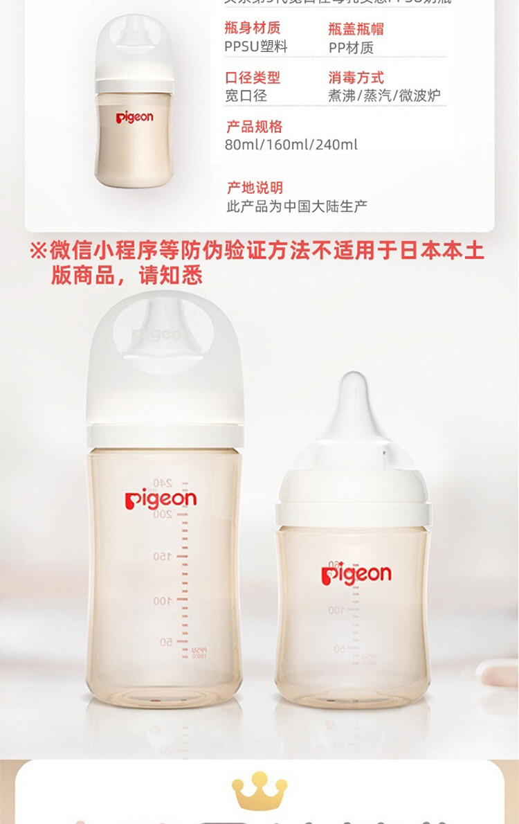 商品名称:【自营】跨境进口 贝亲第三代宽口径母乳实感防摔PPSU塑料奶瓶
