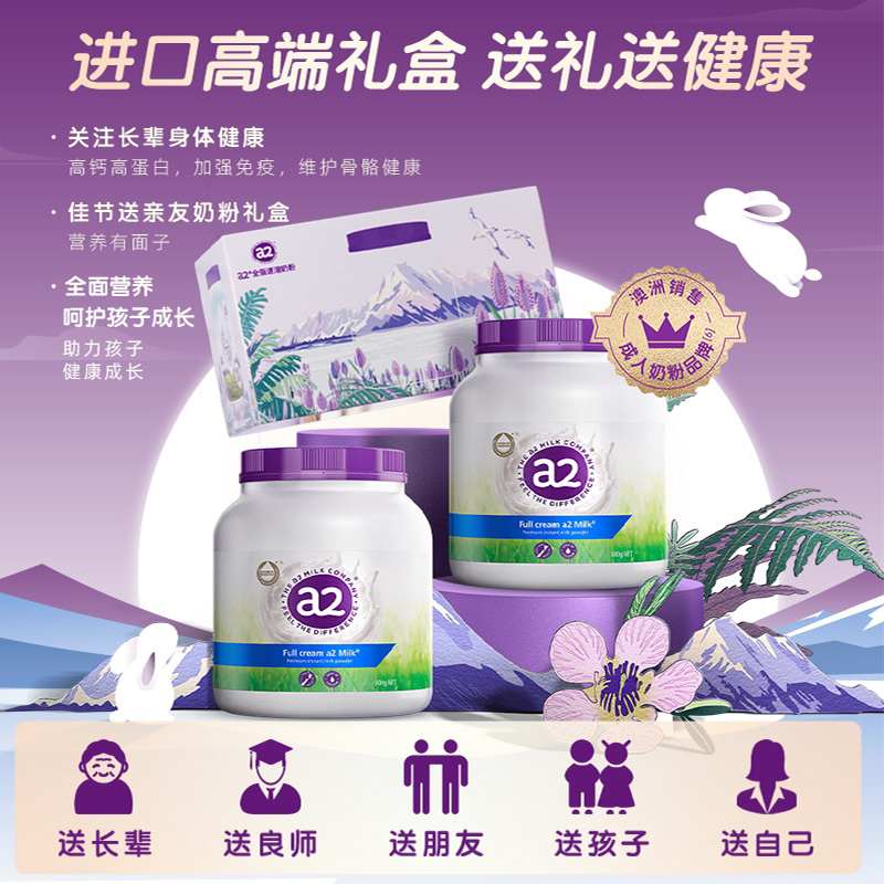 商品介绍:送礼a2紫吨吨全脂成人奶粉2罐礼盒装