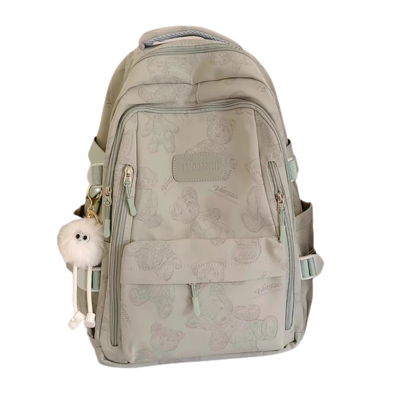 商品名称:书包女初中生简约百搭印花小熊小众设计2024新款大学生电脑背包潮