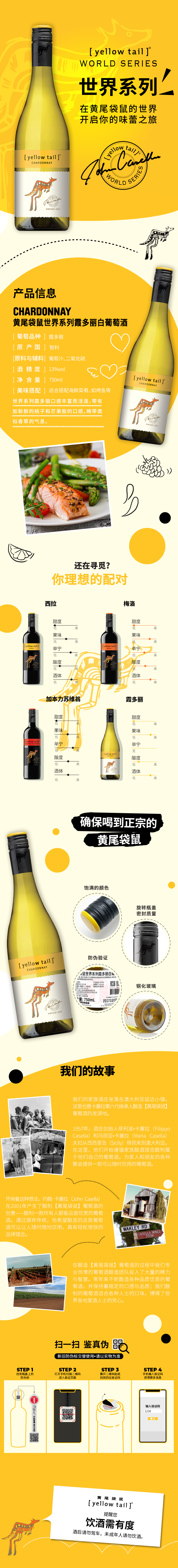 商品名称:【进口】黄尾袋鼠世界系列霞多丽白葡萄酒750ml*6瓶货源紧张