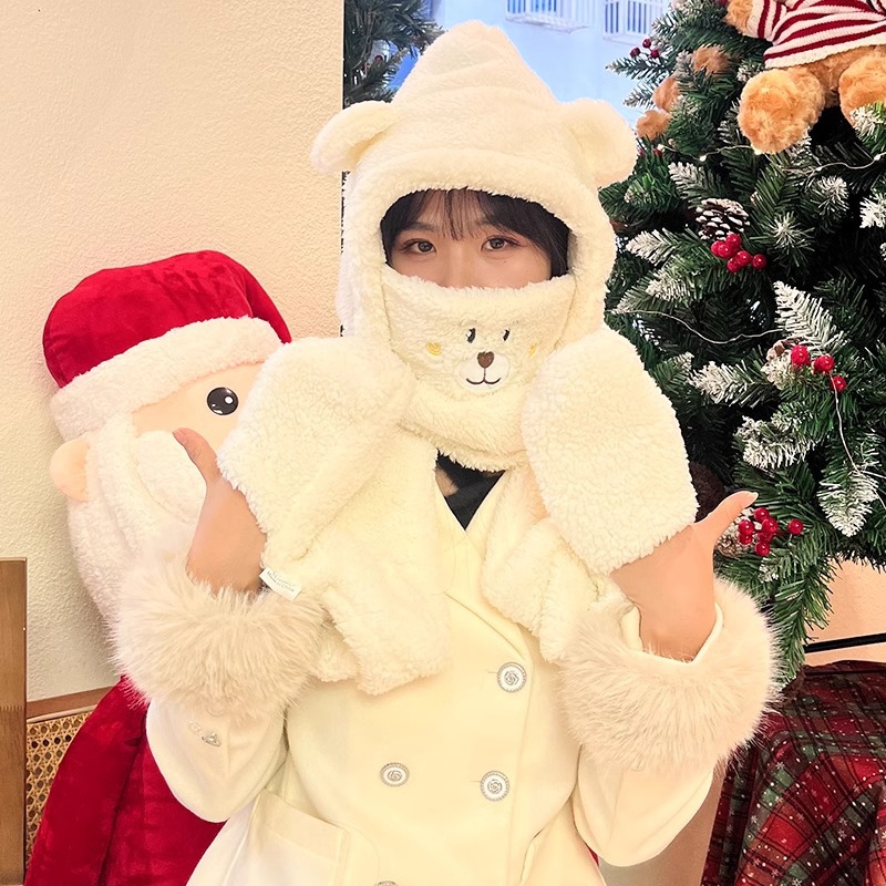 商品介绍:帽子围脖口罩可爱时尚小熊一体帽