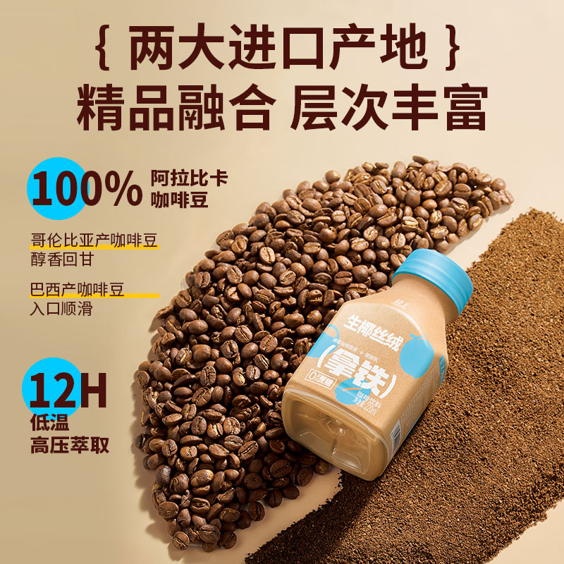 商品名称:轻上生椰丝绒拿铁即饮咖啡饮料220ml*6/10瓶丝滑拿铁咖啡饮料整箱