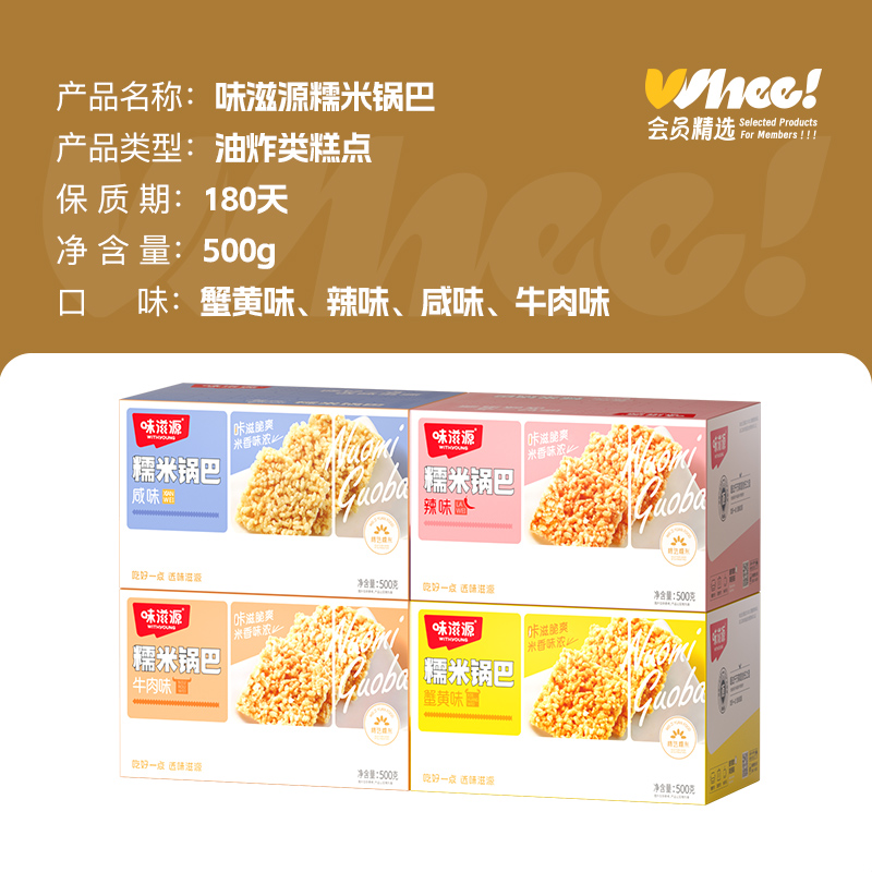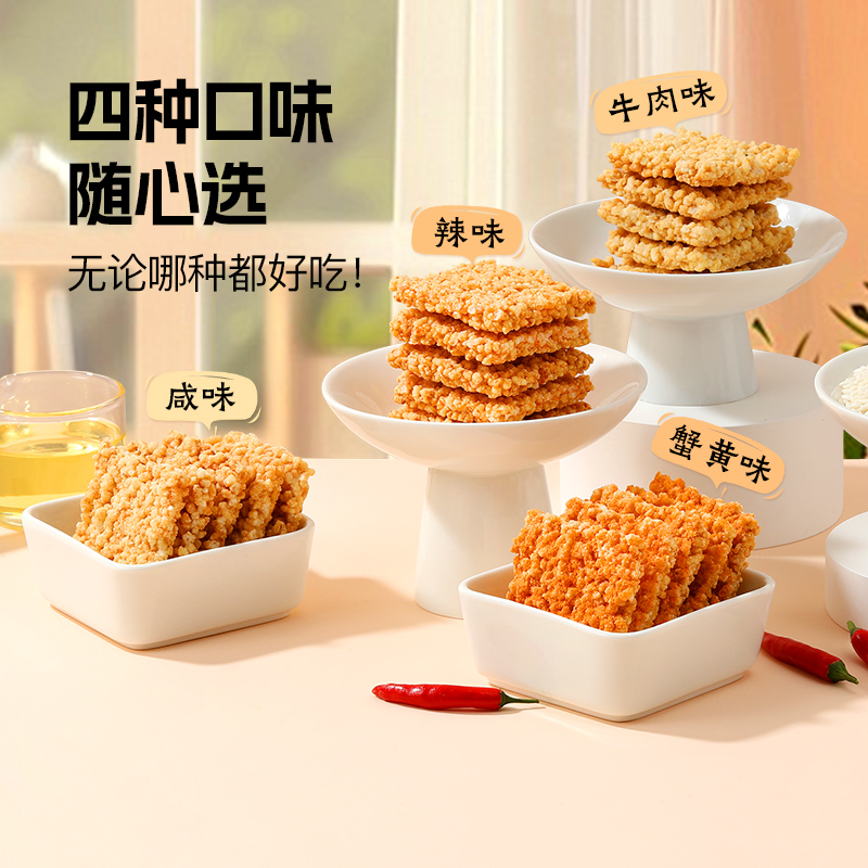 商品名称:会员精选-香酥脆糯米锅巴原味/牛肉味/辣味/蟹黄味500g