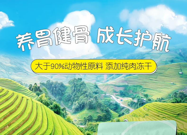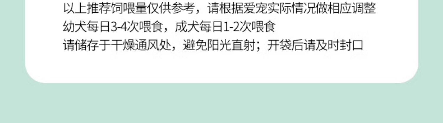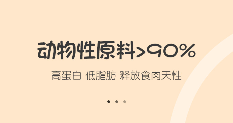 商品简介:养胃健骨,成长护航,高蛋白,低脂肪。释放食肉天性。0谷物,30%牛肉,美毛护肤1+1。鱼油+加蛋黄;开袋即食。满足爱宠的所有需求,