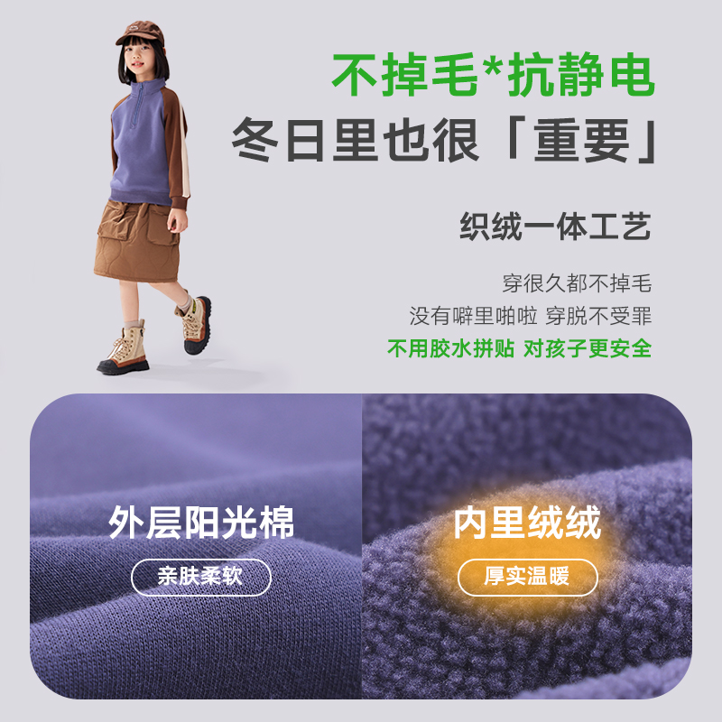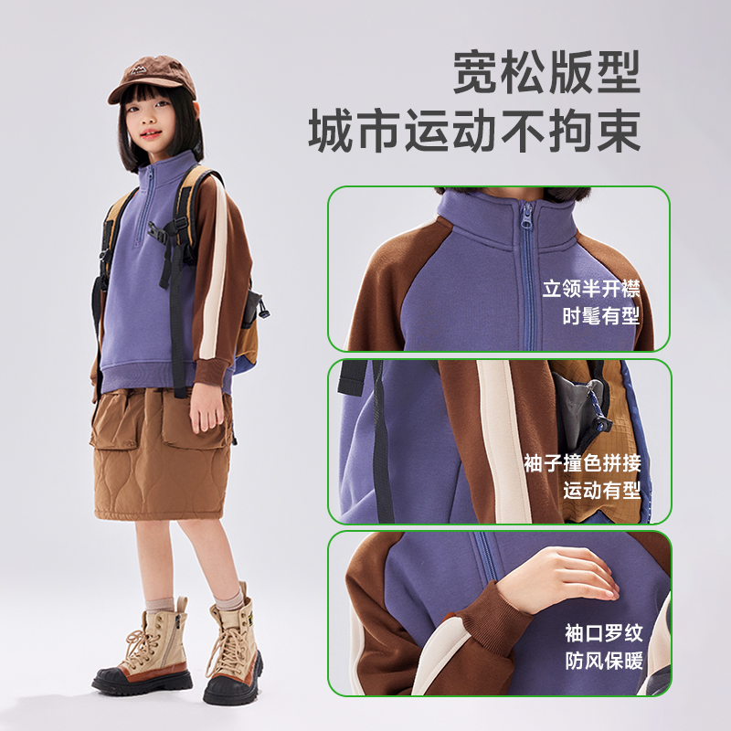 商品名称:EBAER儿童卫衣童装2024冬季新款男童加绒半开襟女童撞色保暖上衣