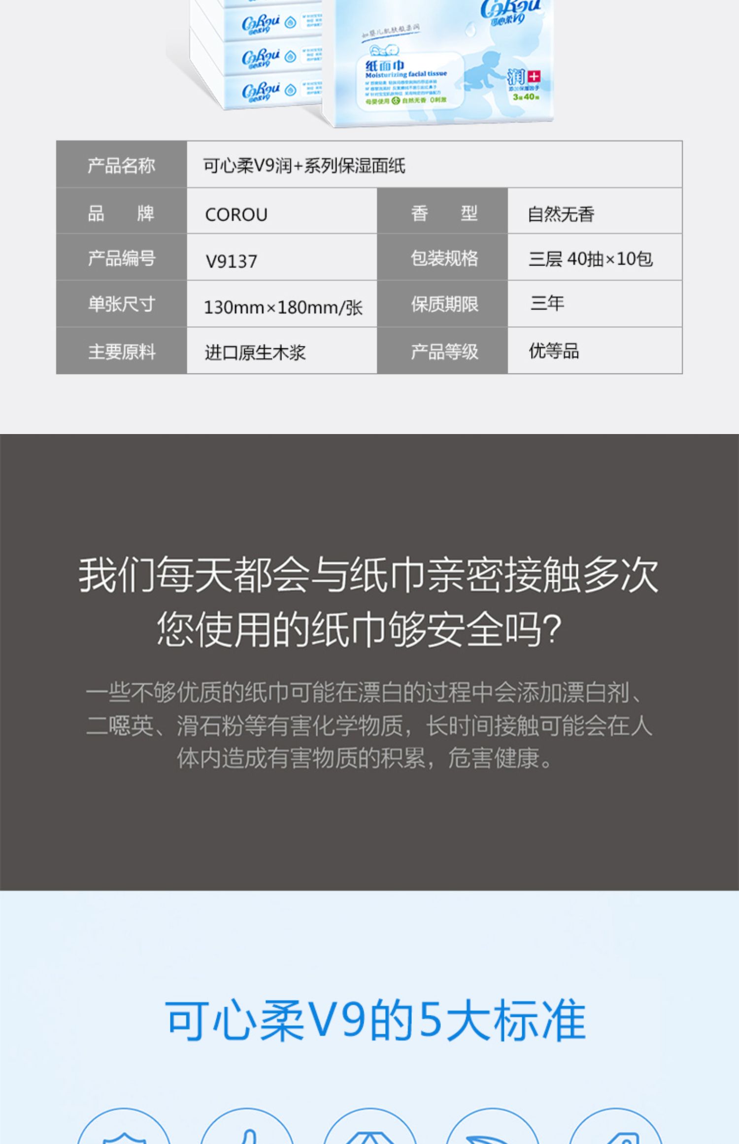 商品名称:可心柔婴儿保湿纸巾10包装面巾纸母婴儿可用柔纸巾40抽便携装
