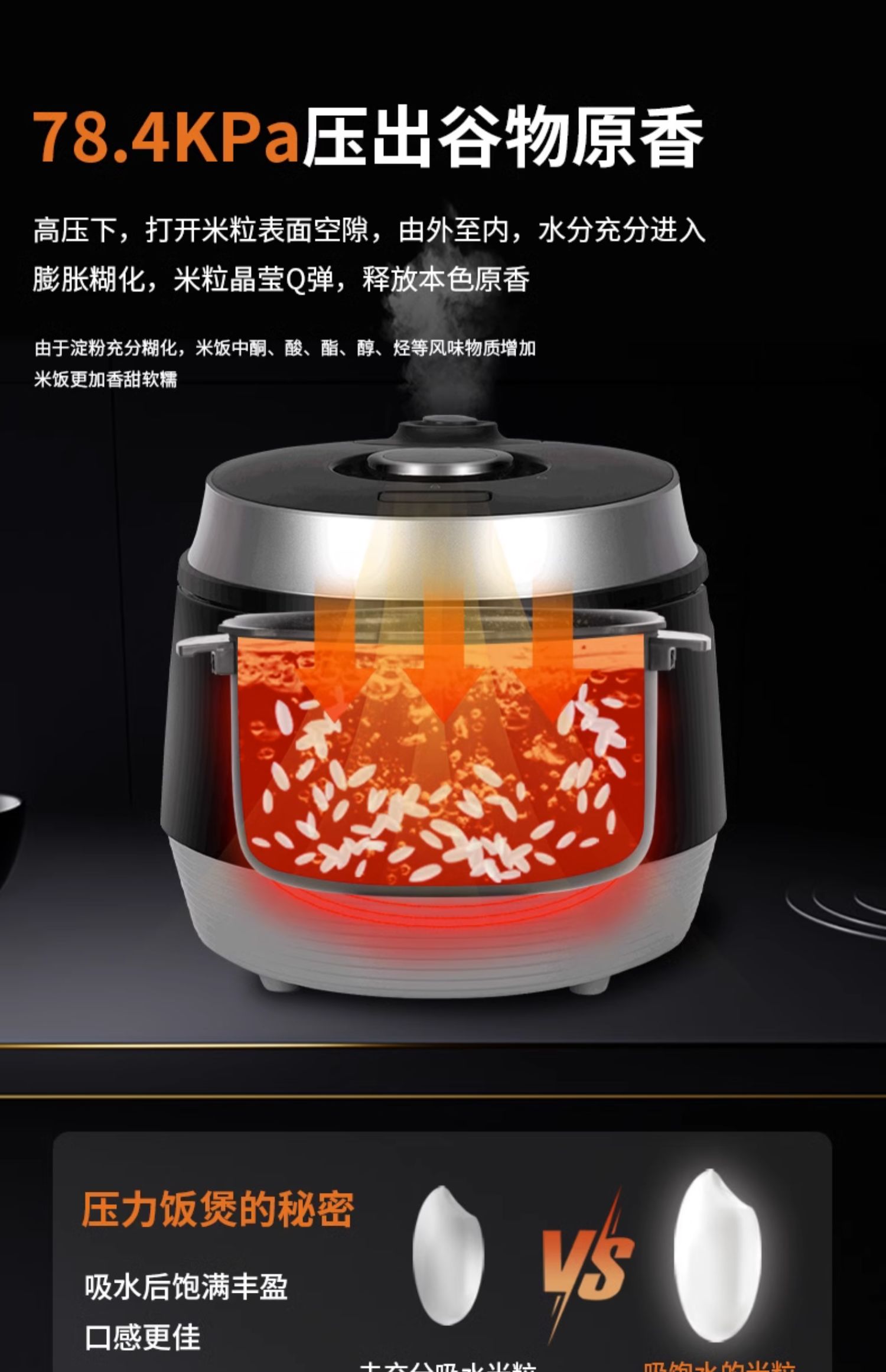 商品简介:大容量,大屏操作,球形双胆,六层铜匠厚斧,一锅多用。六大核心功能,智能预约,吃饭不匆忙【赠运费险】