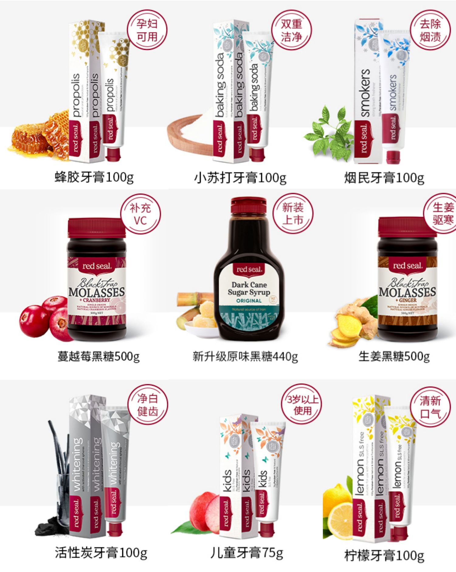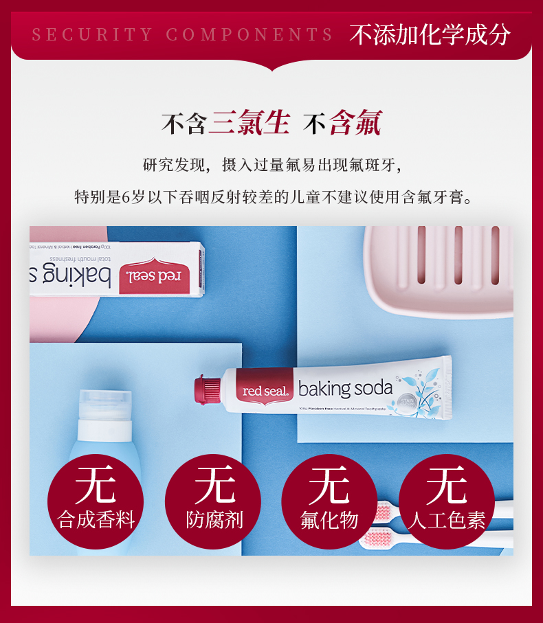 商品名称:redseal红印新西兰小苏打牙膏净白双层洁净无氟低泡清口气祛黄牙