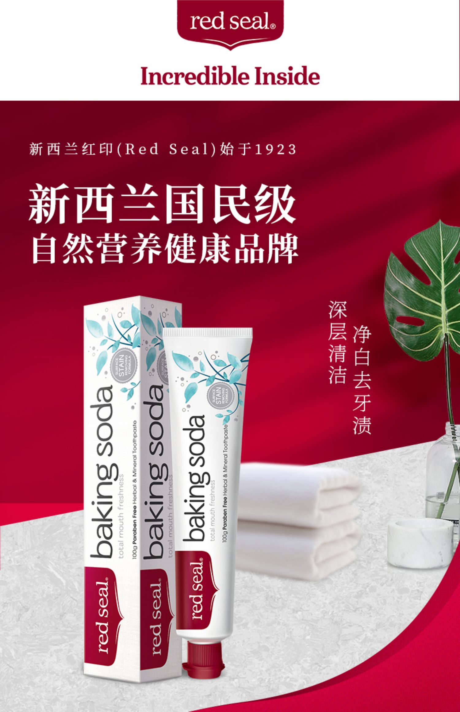 商品简介:【凑单到手17.5元~】新西兰国民级redseal大牌!天然无氟成分,无起泡剂无甜味剂,孕妇孩子也可使用,小苏打可达深层清洁,美白去牙渍,拯救黄黑牙~