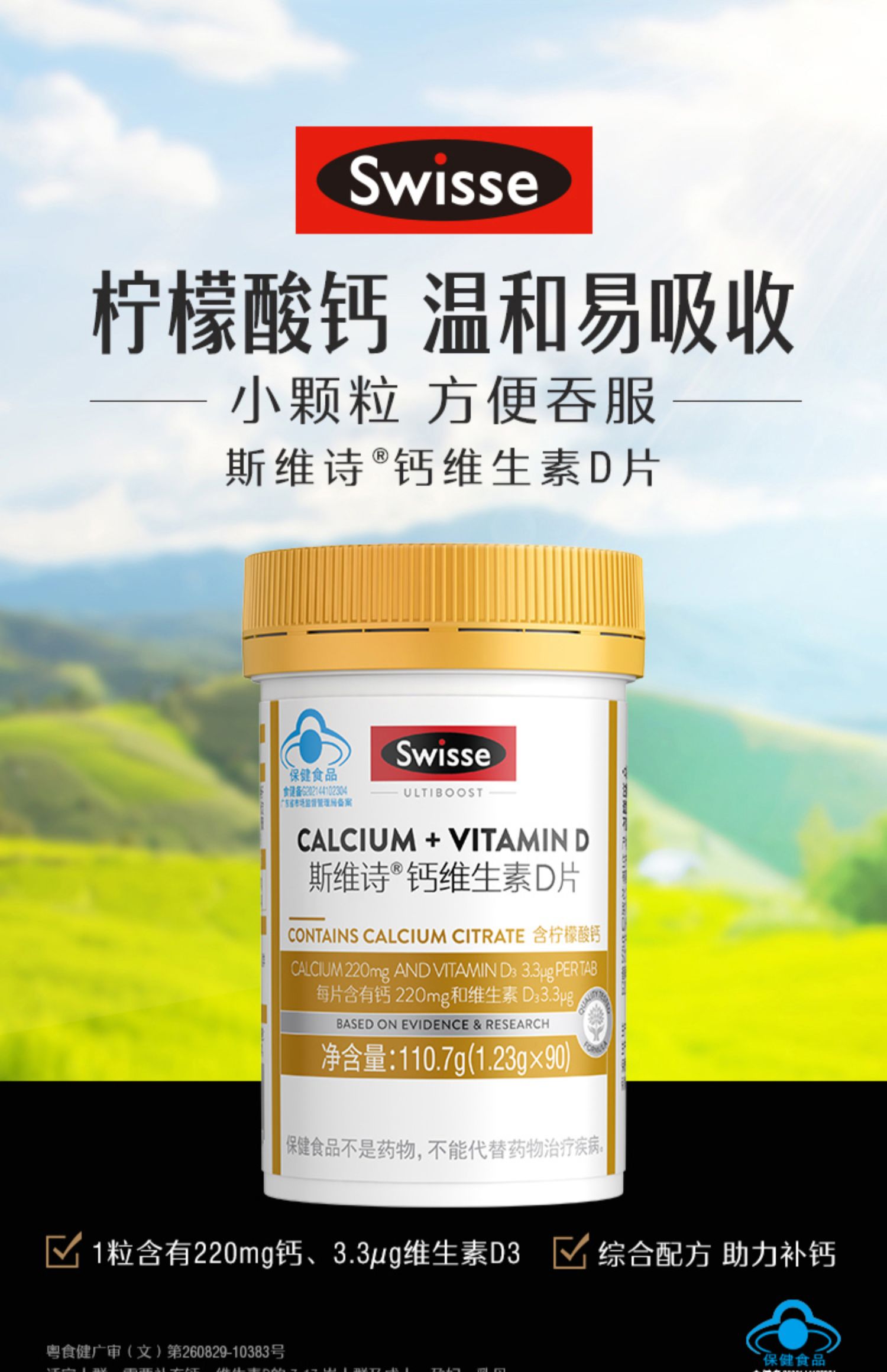 商品介绍:返10r猫卡!Swisse斯维诗成人钙维生素D片