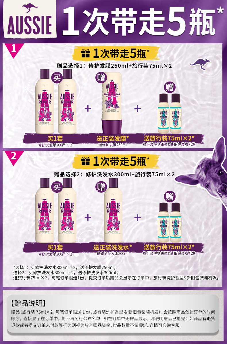 商品介绍:拍1发6!澳丝袋鼠蓬松洗护套装