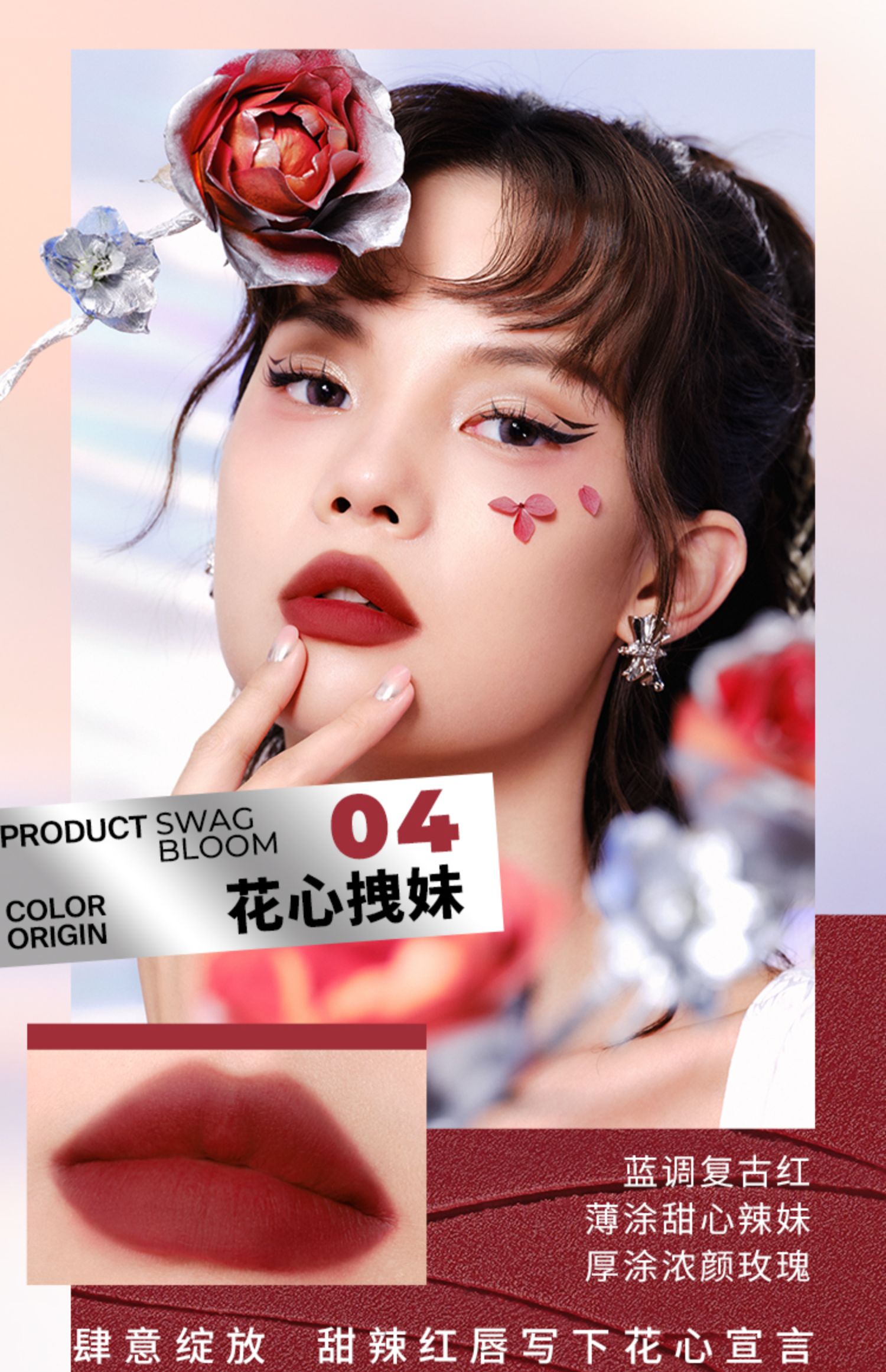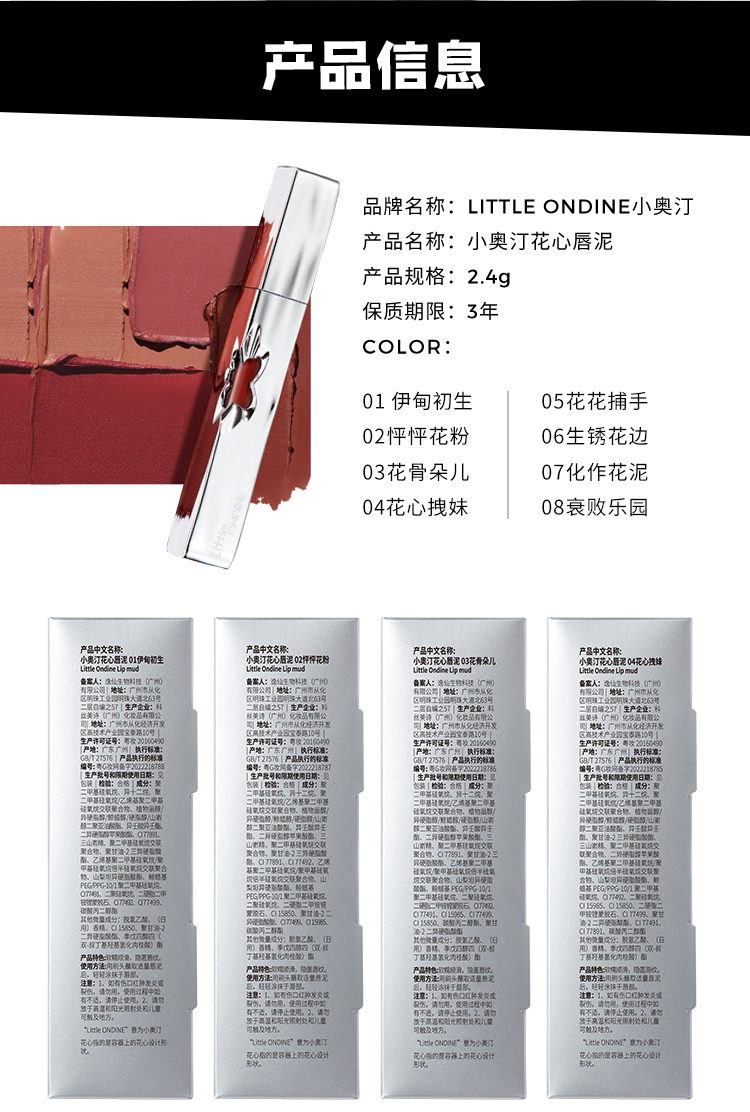 商品介绍:小奥汀花心唇泥哑光丝绒雾面唇釉口红送礼