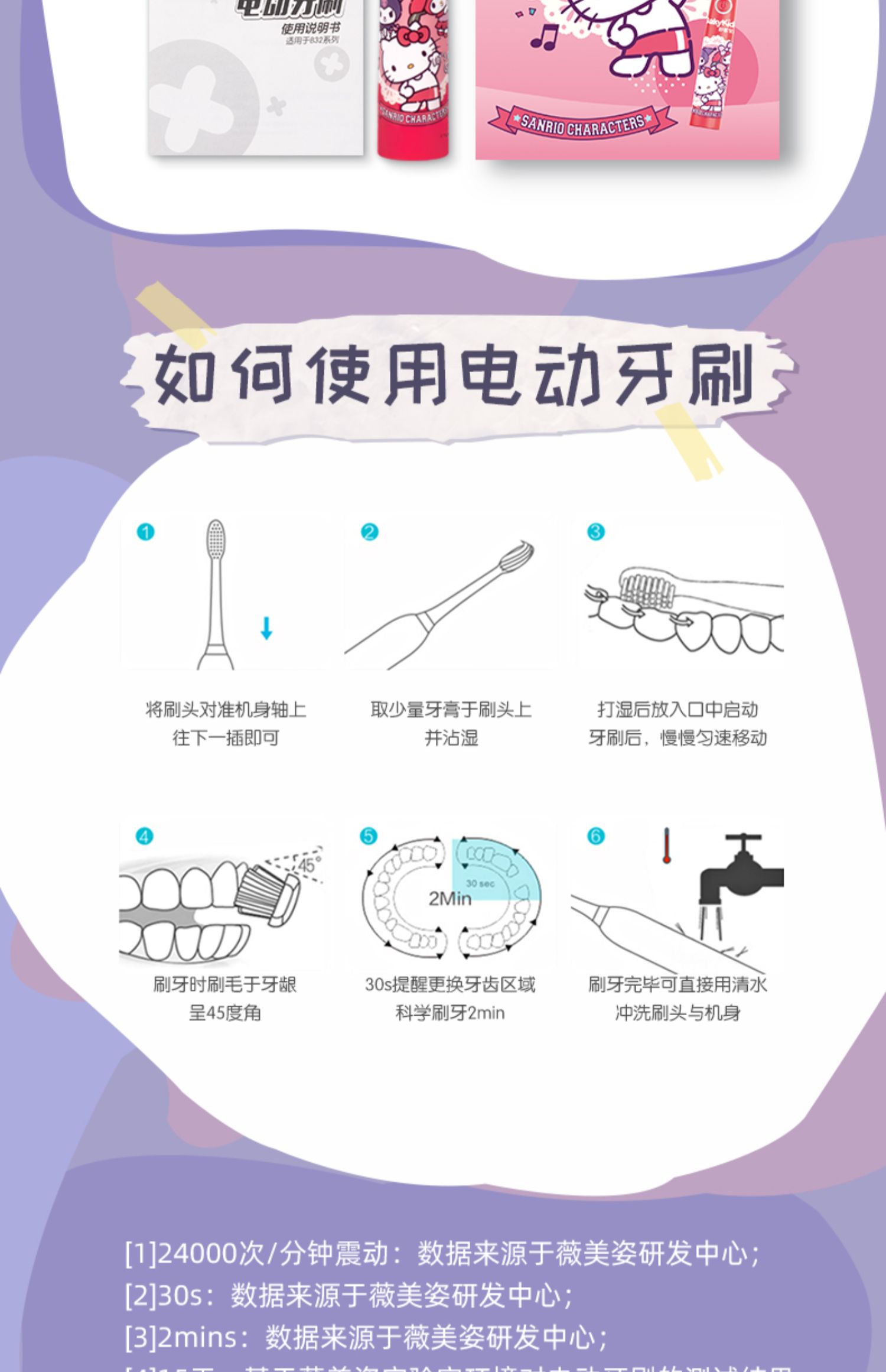 商品简介:【标配刷头*2+刷头*2+儿童含氟牙线棒*1】美国杜邦食品级刷毛,不伤牙龈!三种模式切换,大电池长续航,强韧ABs机身,不怕熊孩子摔坏!【赠运费险】