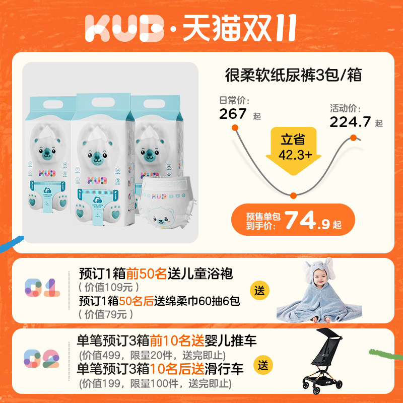 商品名称:【双11预售】KUB可优比BB熊很柔软纸尿裤婴儿尿布薄尿不湿3包/箱