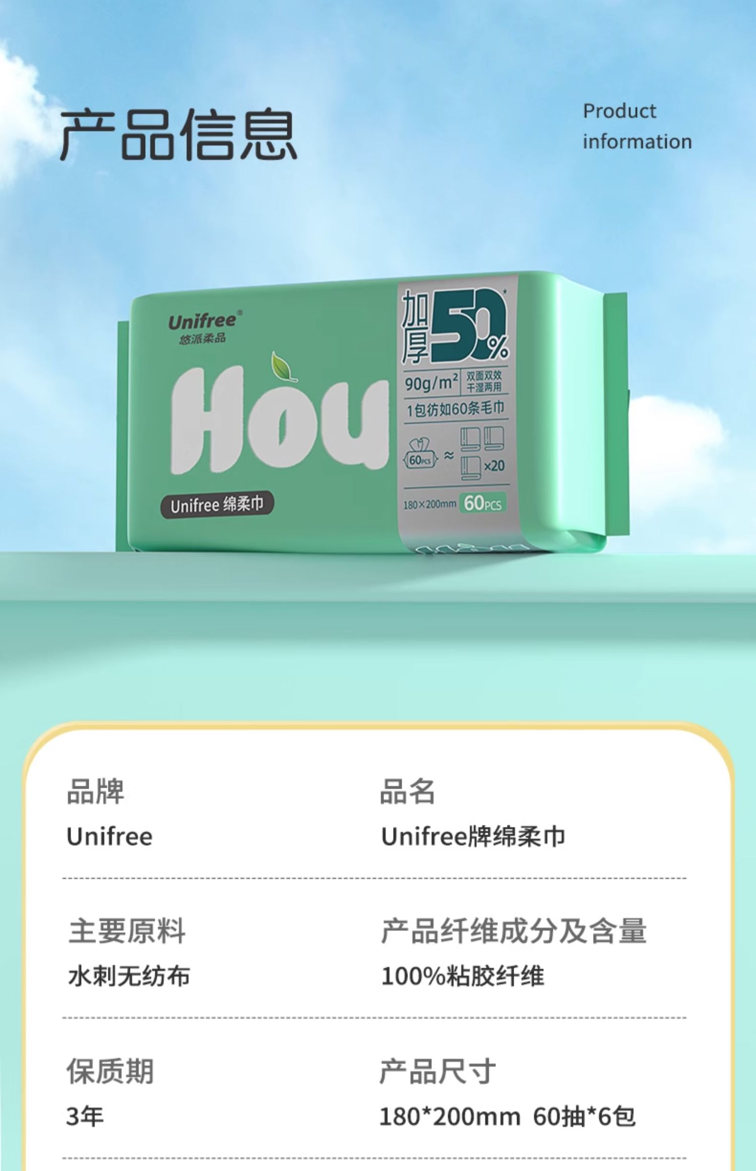 商品名称:unifree一次性洁面巾加厚男女擦脸洗脸巾6包家庭实惠装小毛巾