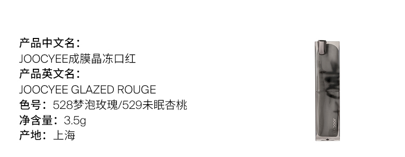 商品名称:[2件85折]Joocyee酵色晶冻口红唇釉唇冻镜面滋润水光显白礼物514