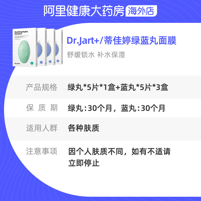 商品介绍:Dr.Jart+/蒂佳婷蓝丸绿丸面膜组合4盒