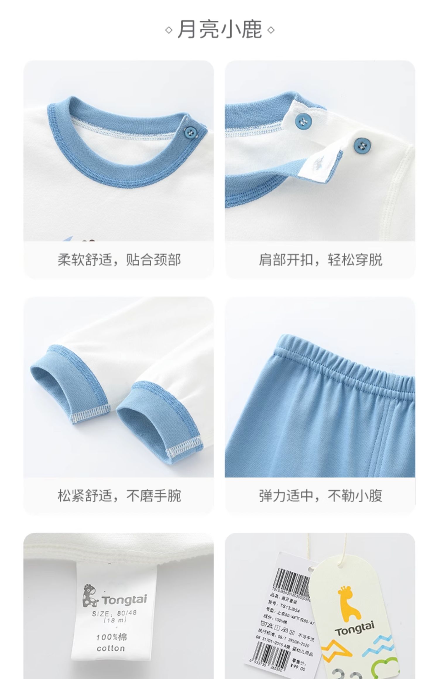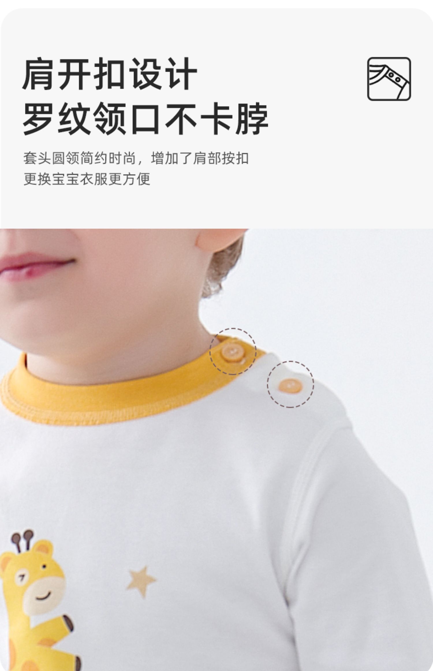 商品简介:【童泰】宝宝纯棉内衣套装,棉柔舒适,暖心无骨,精梳纯棉,四季可穿,打底、居家、睡衣、一衣多穿,80-100码肩开设计,不卡小脑袋,穿衣更轻松!