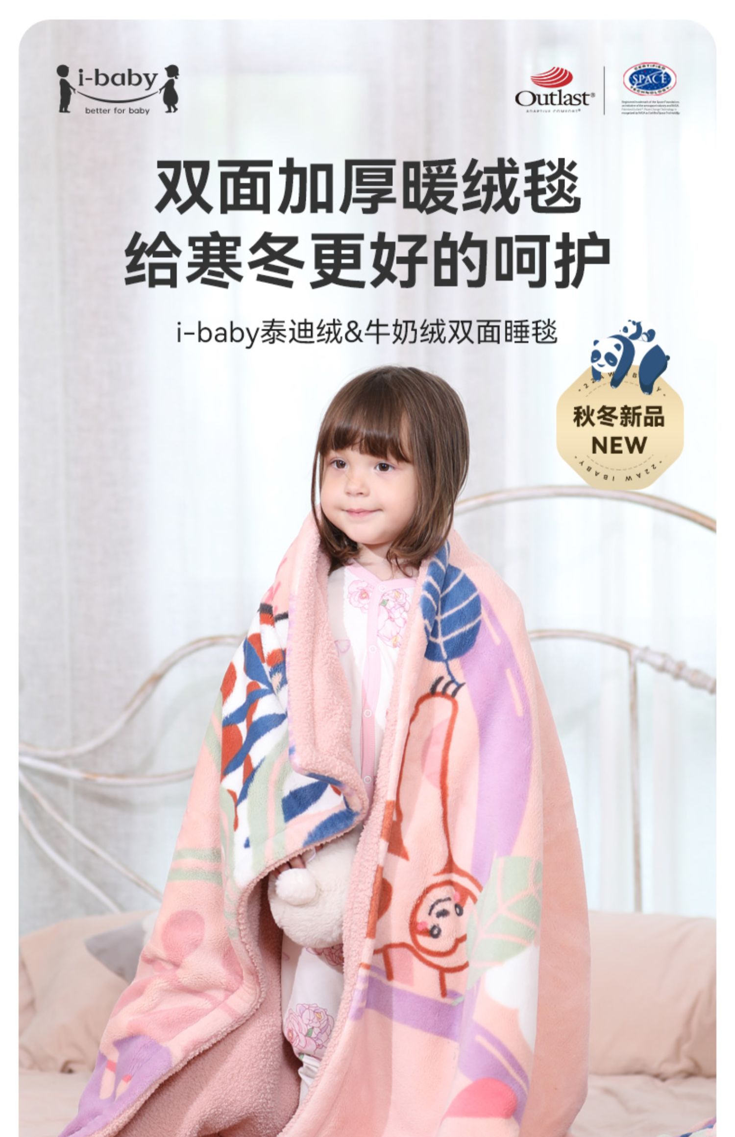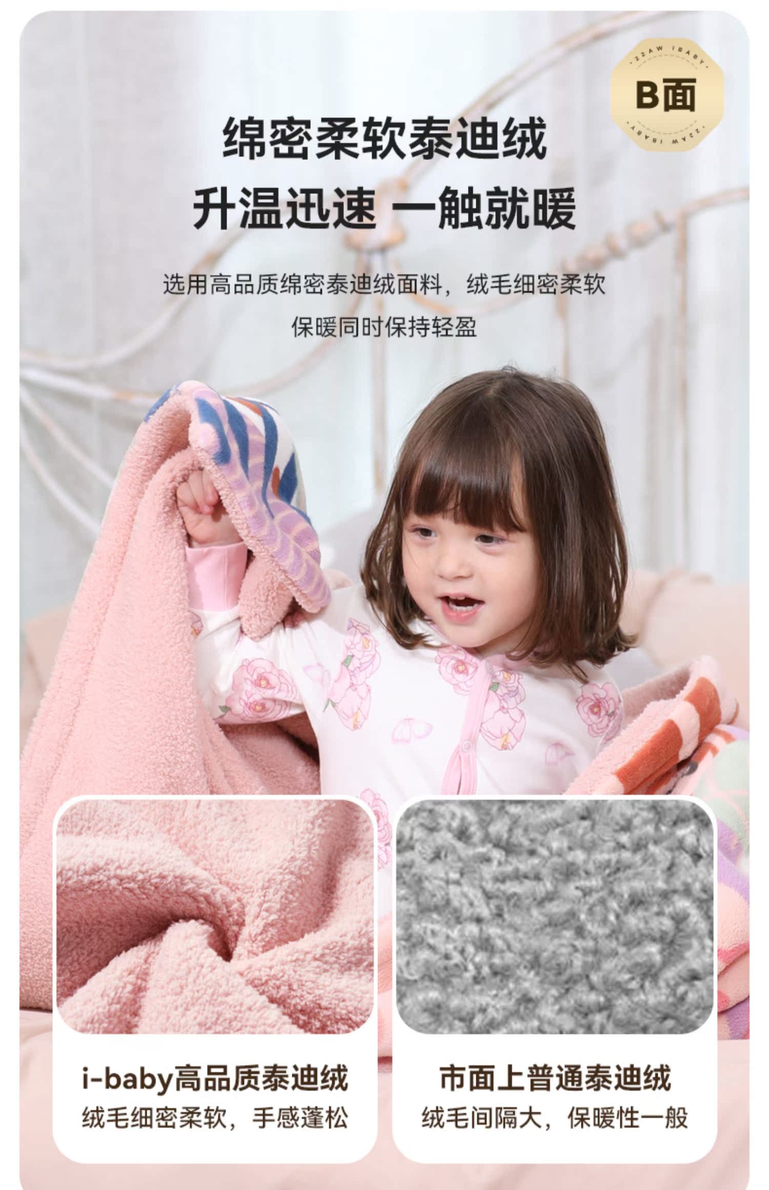 商品介绍:ibaby新生婴儿童盖毯抗静电印花秋冬
