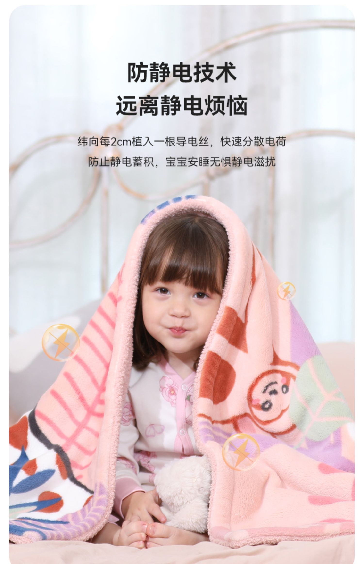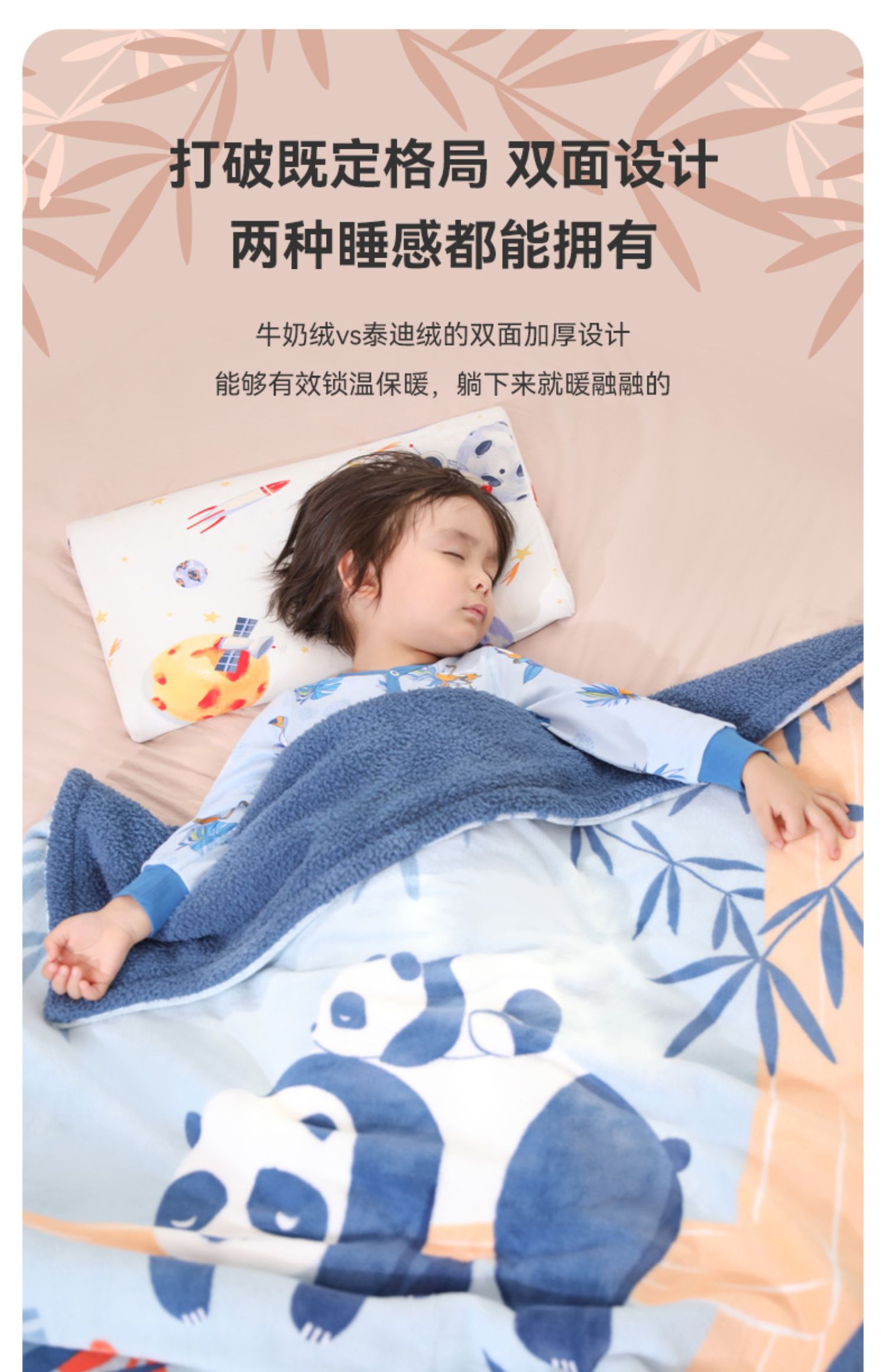 商品简介:【59】双面设计:牛奶绒&泰迪绒的双面加厚设计,能够有效锁温保暖,躺下来暖融融的!防静电技术,宝宝安睡无惧静电!妈妈放心的选择!
