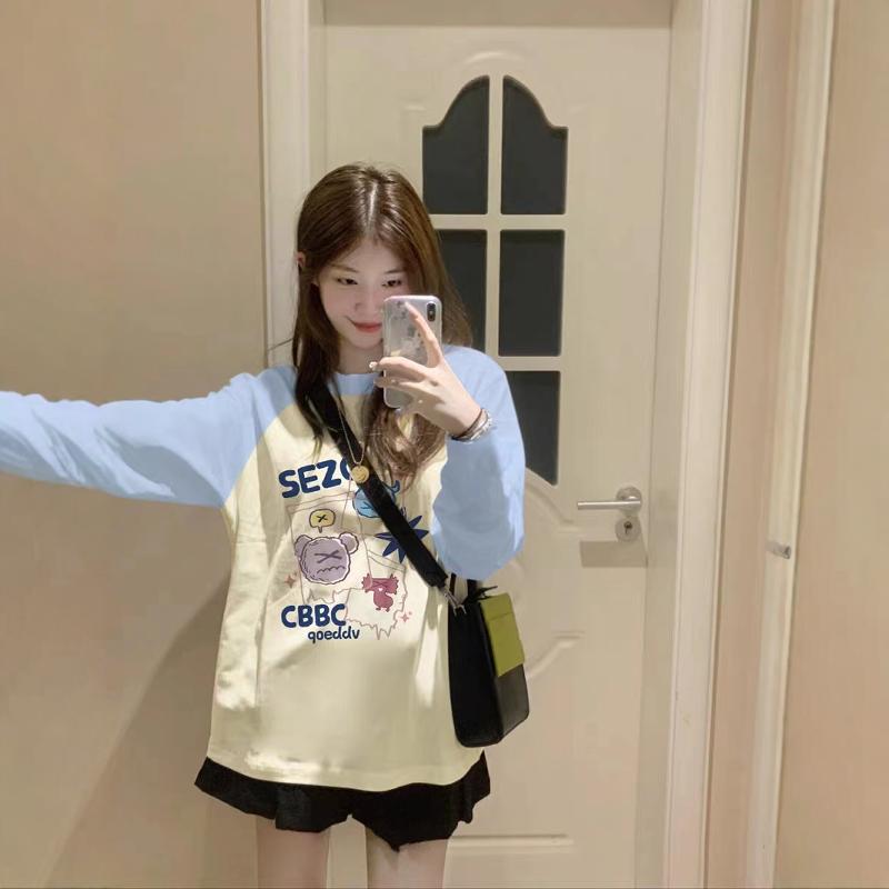 商品名称:设计感小众拼色长袖T恤女春秋内搭打底衫ins潮外穿宽松上衣服