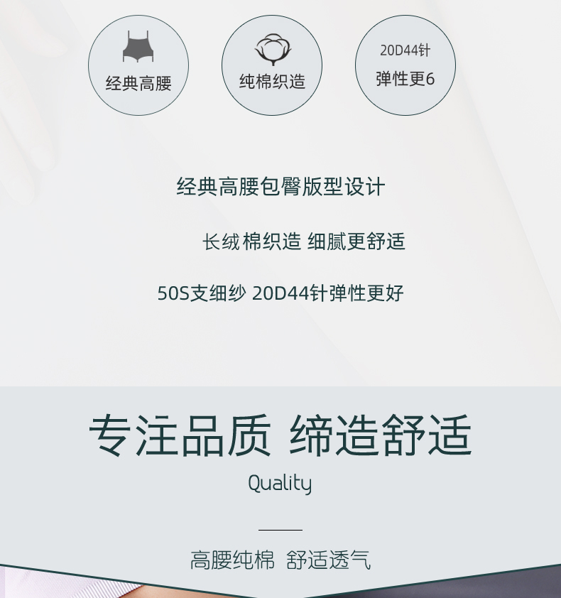 商品简介:舒适无痕,纯棉抑菌,中腰舒适,精致蕾丝,颜值担当,不夹臀,不夹裆,360°包裹,舒适不紧绷,典雅新时尚!