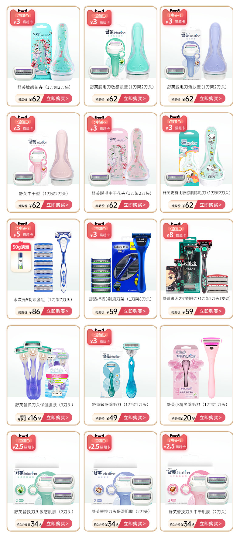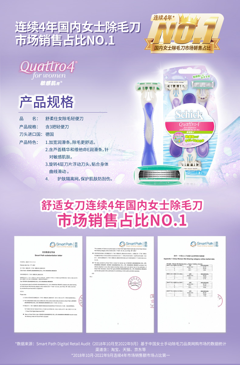 商品介绍:舒适舒芙剃手动毛刀3支装