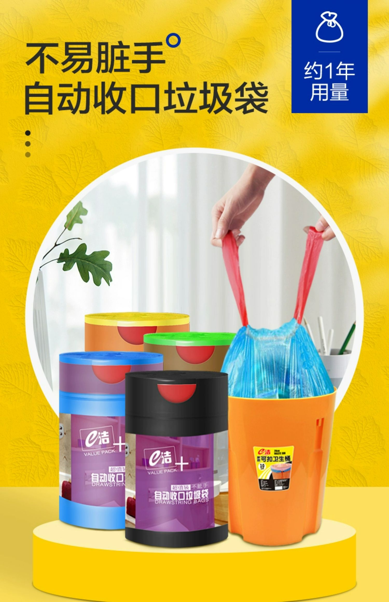 商品介绍:【凑单!】e洁360只垃圾袋加厚自动收口
