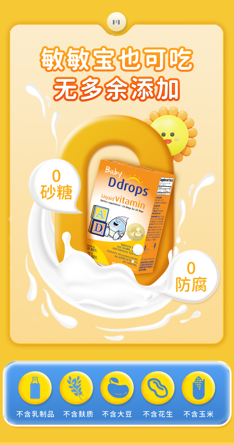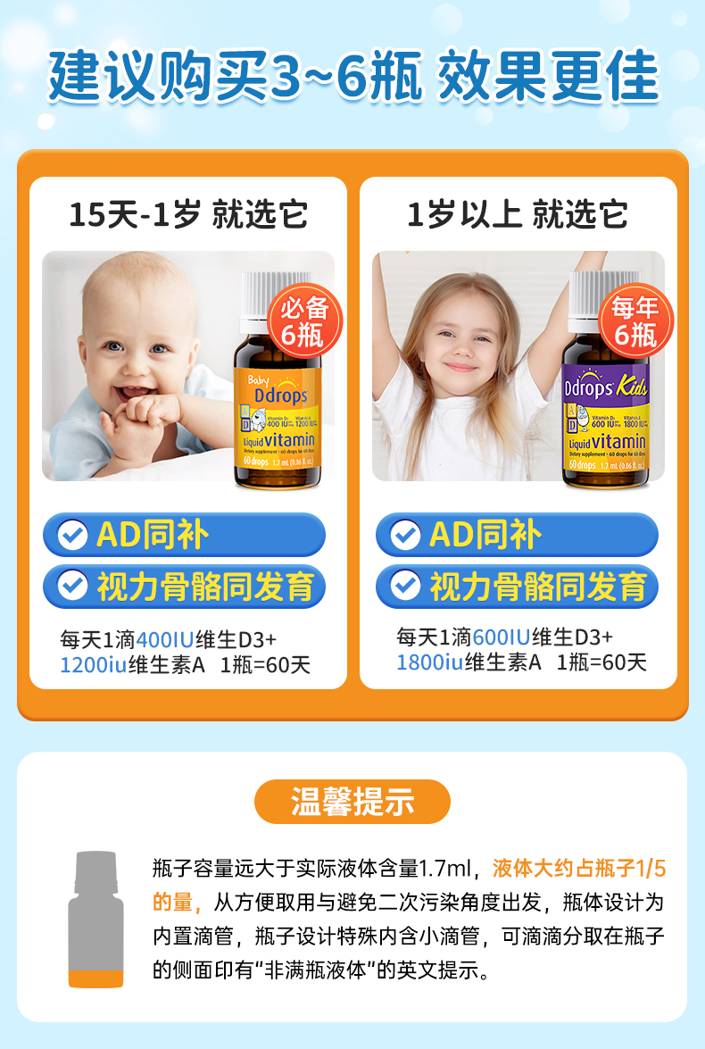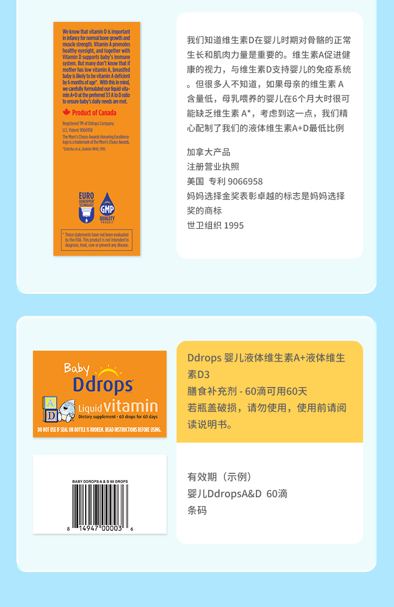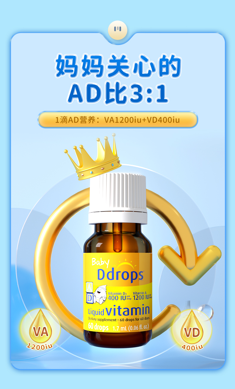 商品名称:【自营】Ddrops新生儿宝宝d3维生素AD进口滴剂婴儿补钙VD小滴瓶