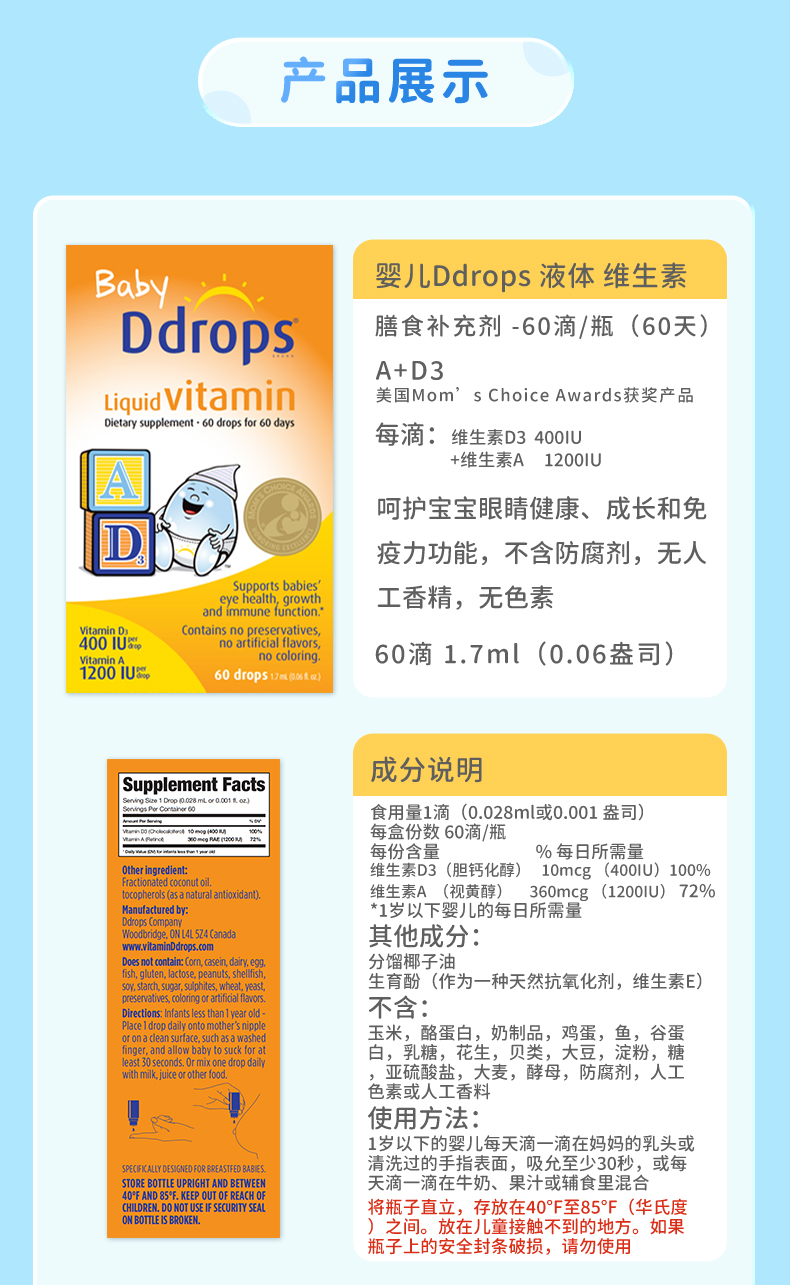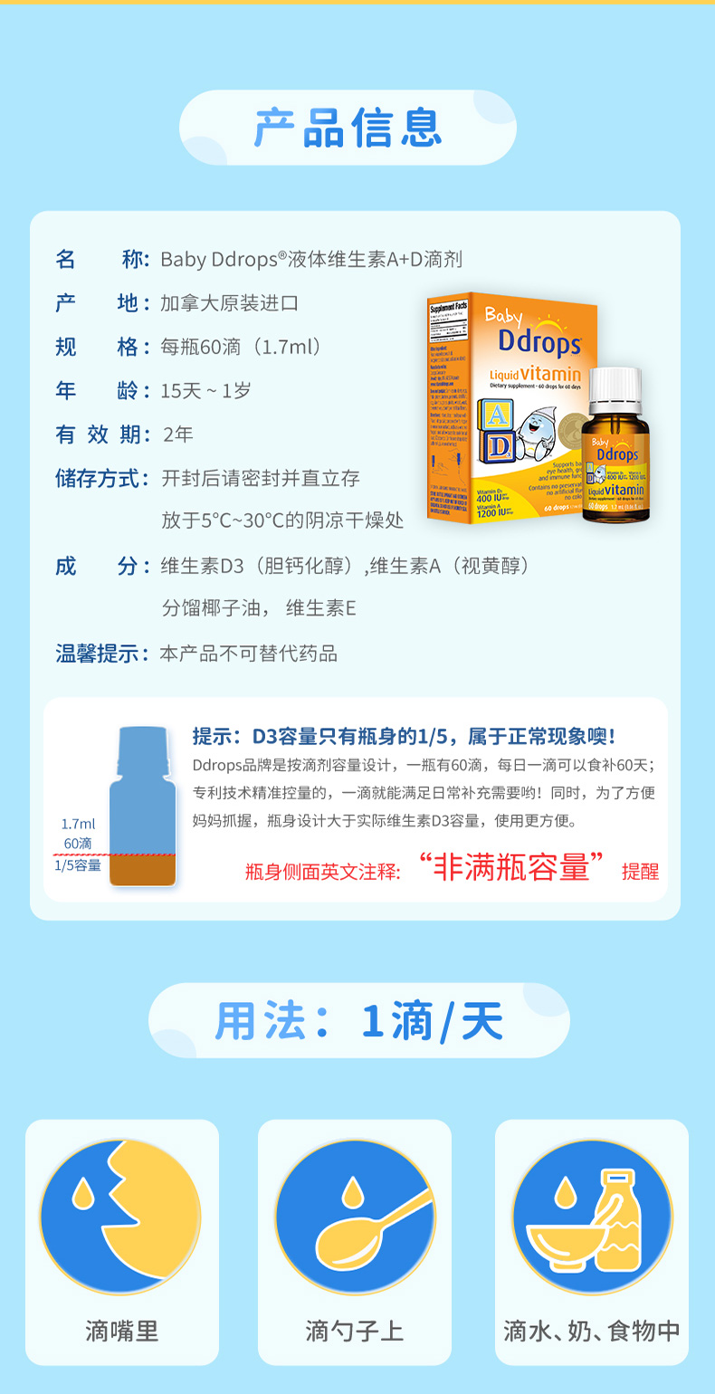 商品介绍:Ddrops新生儿宝宝VD小滴瓶